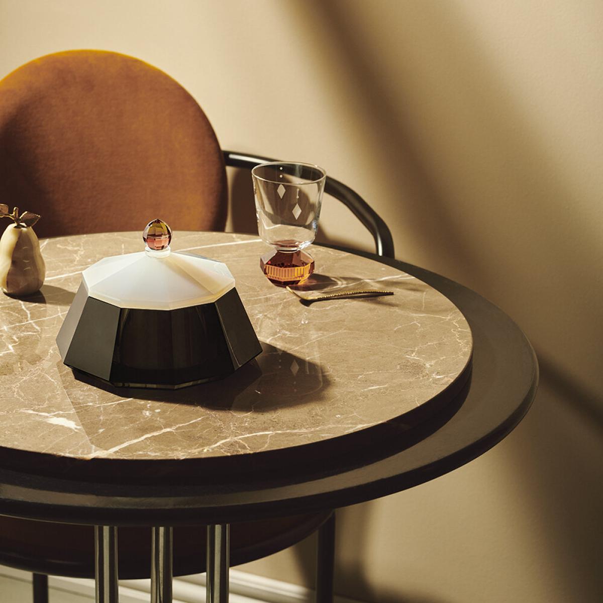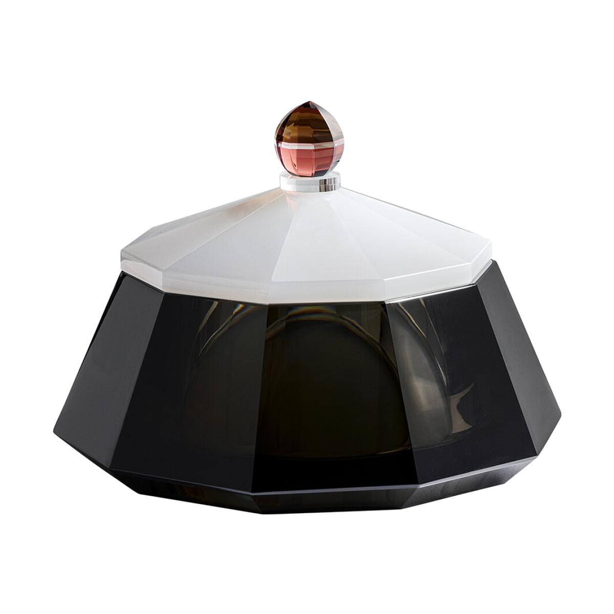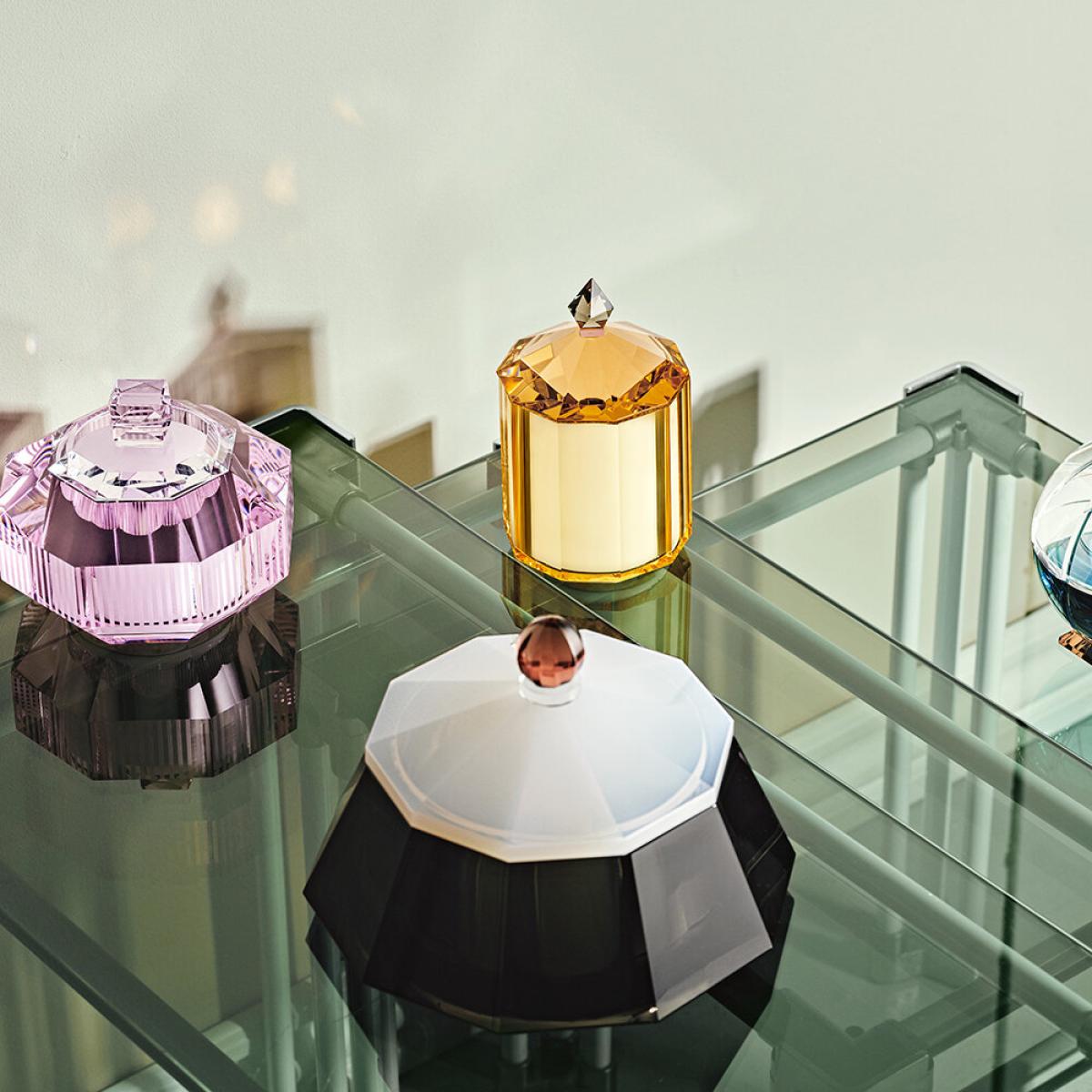 Elevate your living space with this stunning Sofie crystal scented candle from Reflections Copenhagen. Presented in a beautiful hand cut lidded crystal vessel, this scented candle blends top notes of fig and coconut with a heart of orange blossom and white flowers, and a base of sandalwood and amber for a warming, spiced aroma with a tropical twist. Once the candle has burned away completely, this stunning crystal ornament can be used as a trinket box.