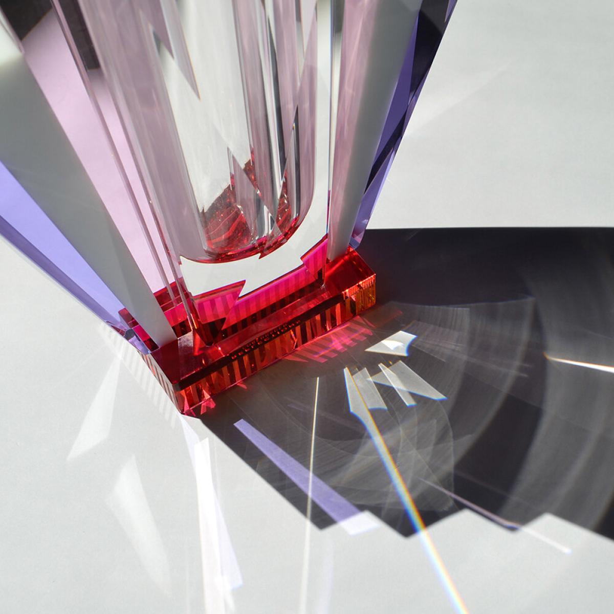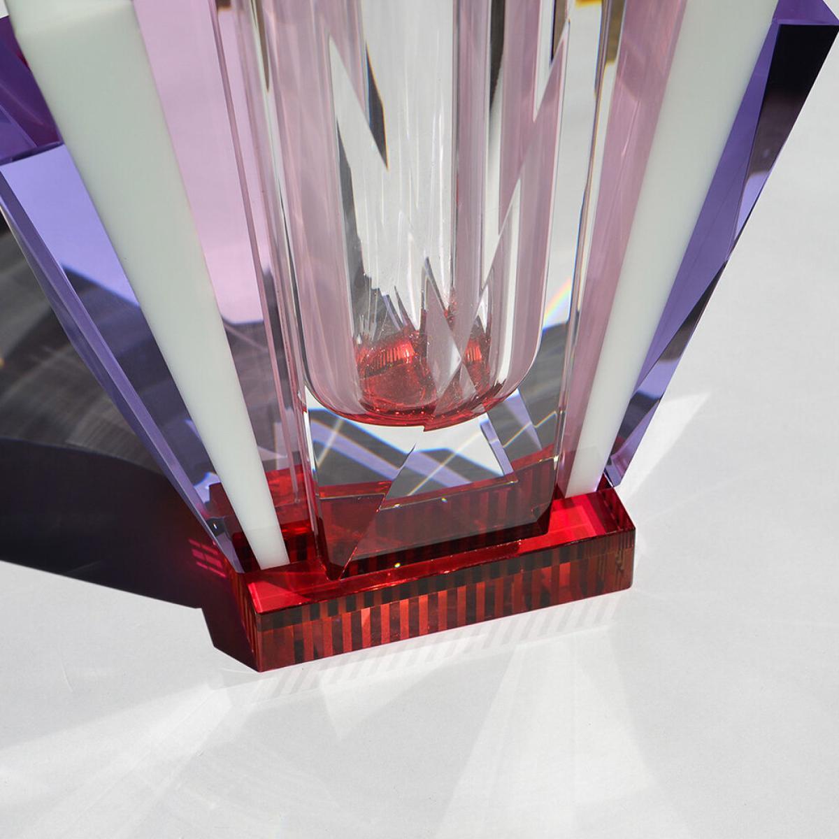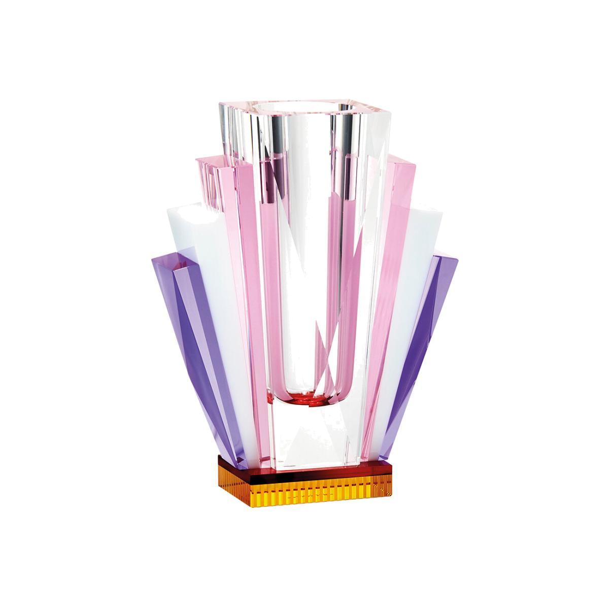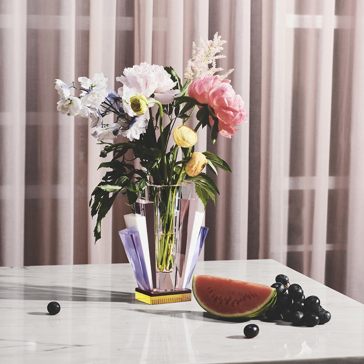 I love the South Beach Crystal Vase for its bold, modern silhouette and striking colour accents, making it a standout piece in contemporary interiors. It works particularly well in minimalist or coastal settings, where its vibrant pink and purple hues can add a pop of colour without overwhelming the space. For styling, I recommend pairing it with fresh, simple stems or florals to highlight its unique shape, or even displaying it empty as a sculptural element on a sideboard or console table. Its versatile yet eye-catching design makes it an excellent statement piece that can easily blend into various schemes while adding a touch of sophistication and colour.