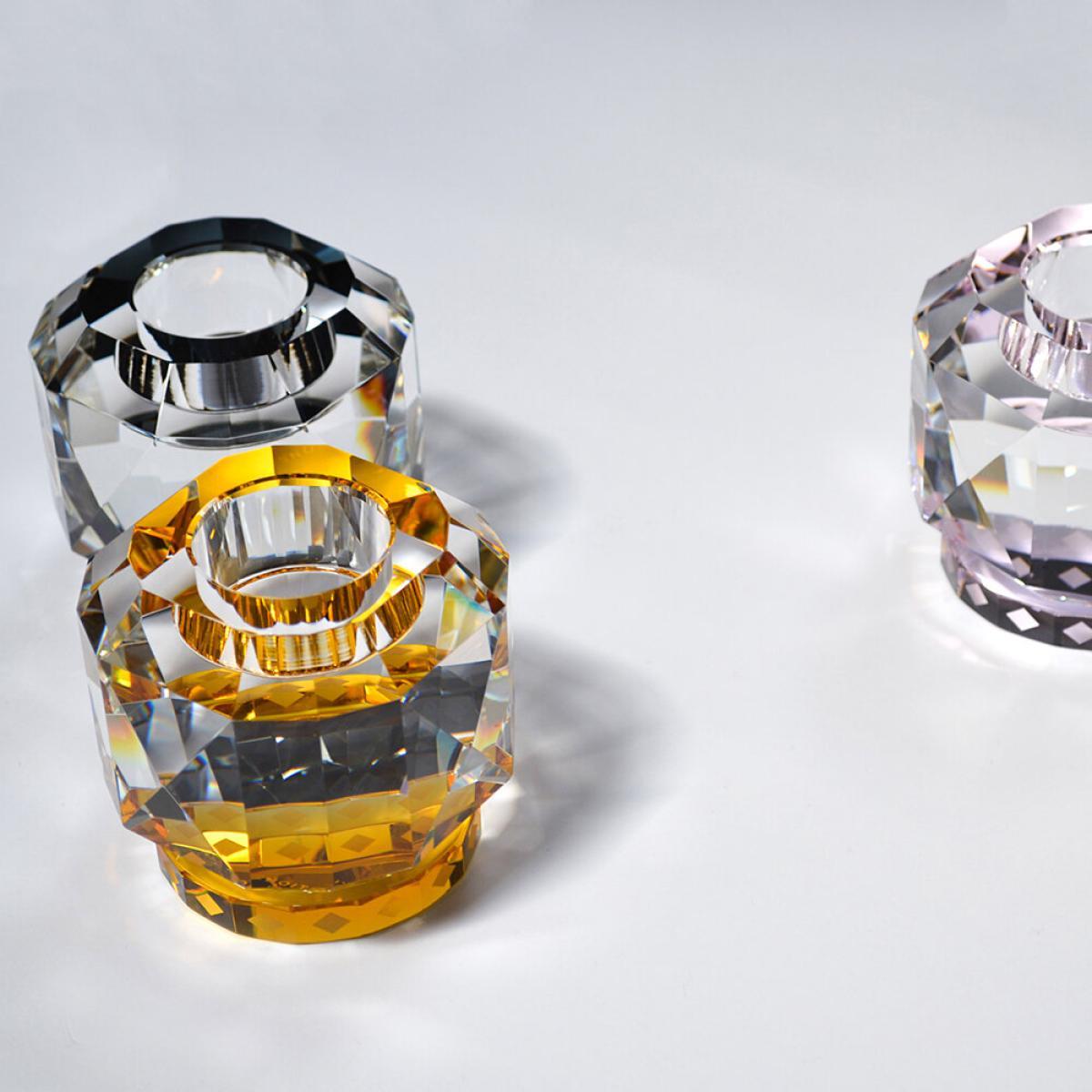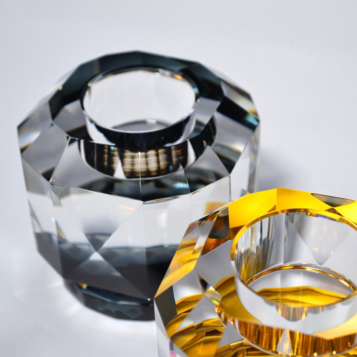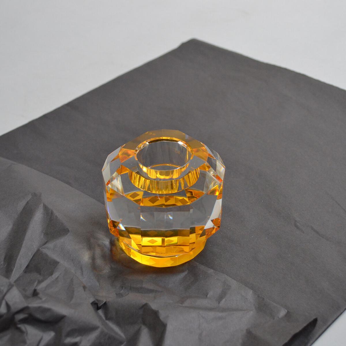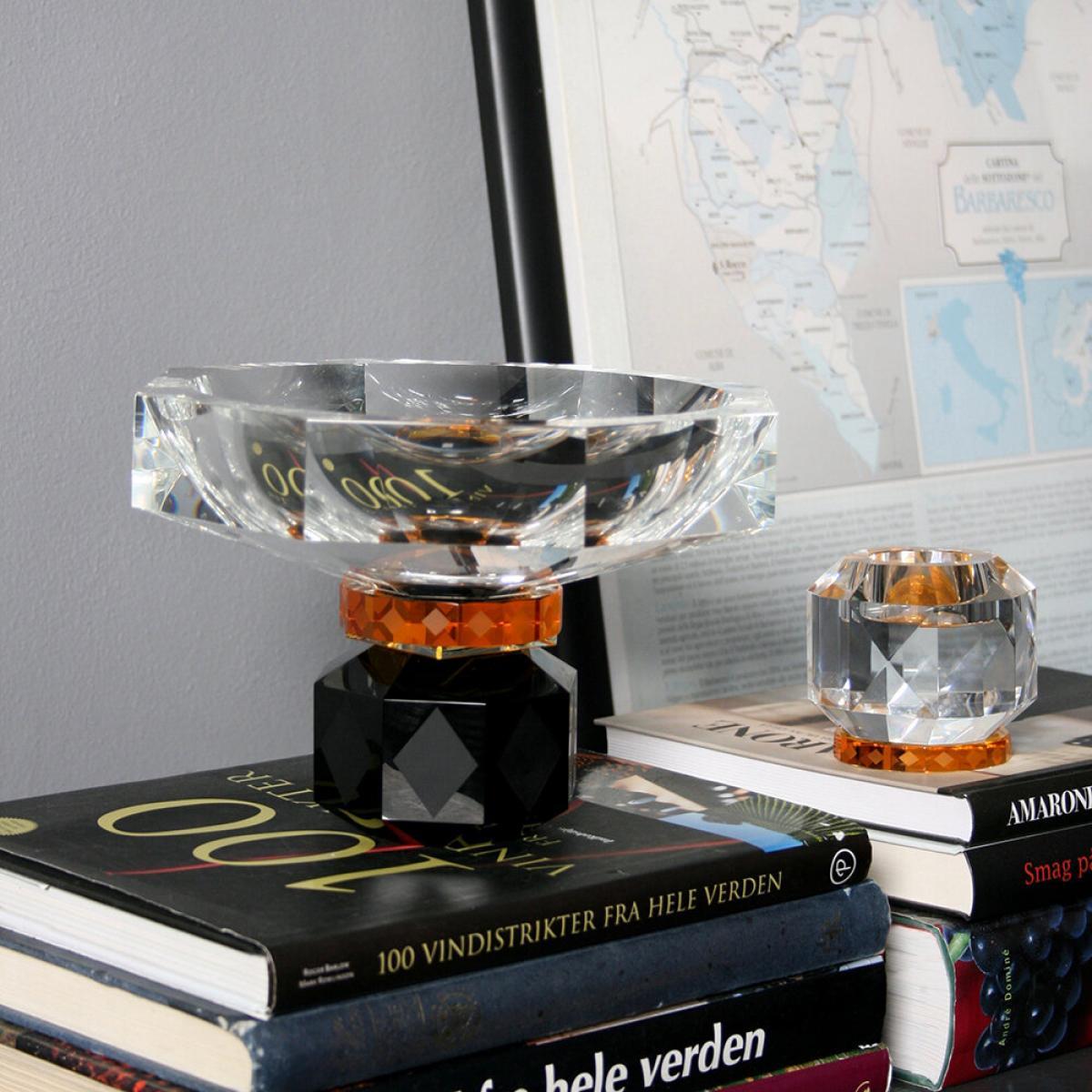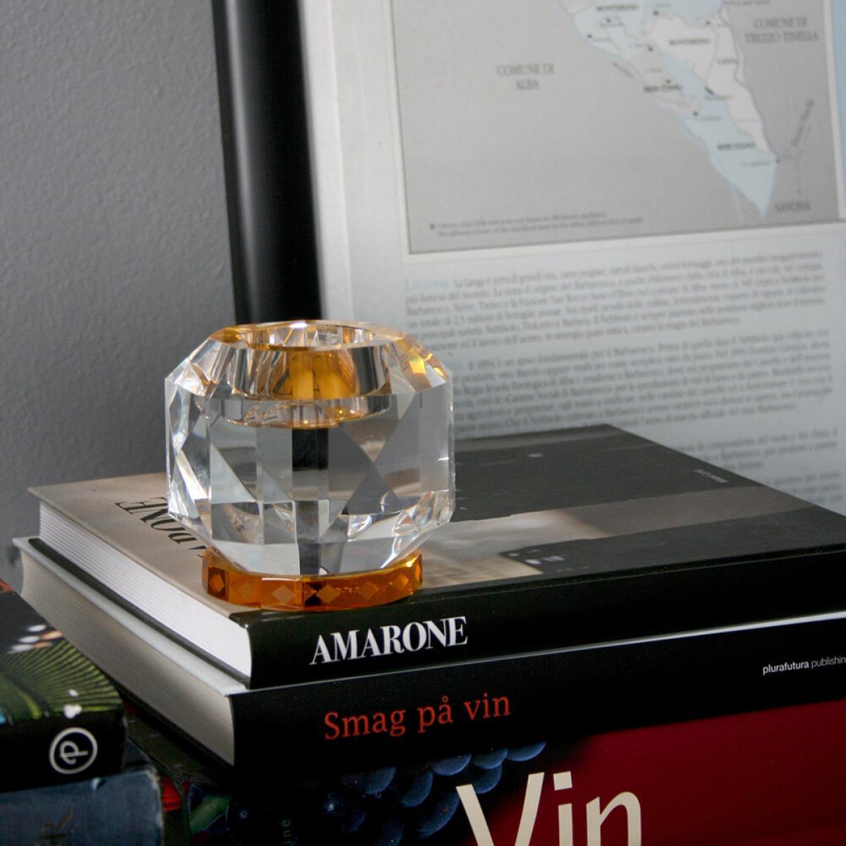 I love this tealight holder because of its versatile elegance, seamlessly combining clear and amber tones that add warmth and sophistication to any setting. It works particularly well in contemporary and minimalist interiors, where its geometric cut facets can catch and reflect ambient light beautifully. For styling, try placing it on a mantle, coffee table, or sideboard alongside metallic accents or natural materials like wood or stone for a balanced look. Grouping different sizes or varying the colours can also create a striking visual vignette. Practical tips include pairing it with pillar candles for a modern take or small tealights for a more delicate glow, making it a flexible piece for both everyday living and special occasions.