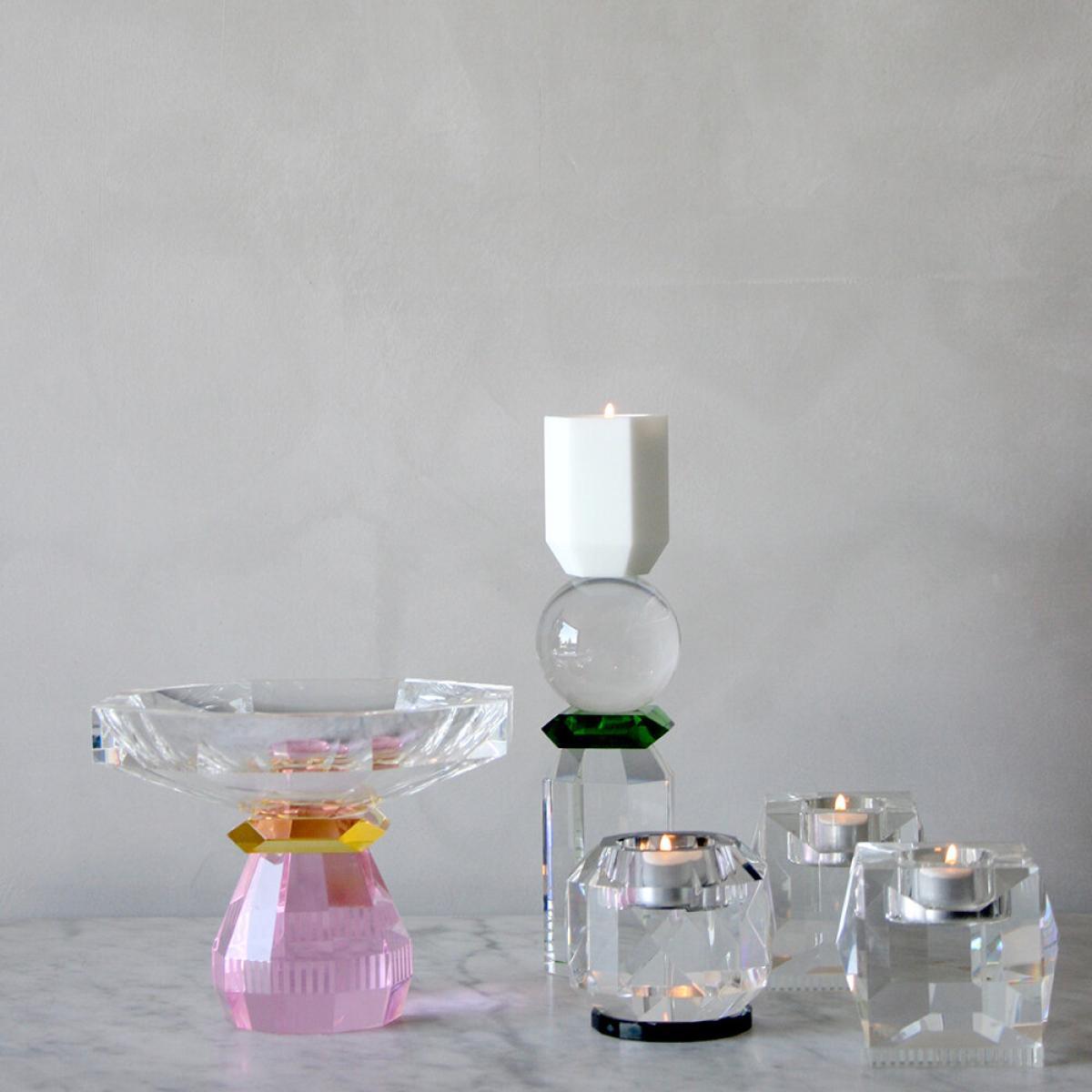 I really like this crystal tealight holder because its clean, contemporary design makes it a versatile addition to various interiors. It works particularly well in modern and minimalist spaces but can also add a touch of sophistication to more eclectic or luxe schemes. The clear and black combination creates visual interest without overwhelming the setting, making it perfect for centrepieces or grouped displays. Practical styling tips include pairing it with other metallic or glass accents, placing it on a mirrored tray for extra sparkle, or arranging several in a row along a dining table or mantel for a subtle yet impactful glow during dinner parties or cosy evenings. Its simplicity allows it to seamlessly blend into both understated and statement decor styles.