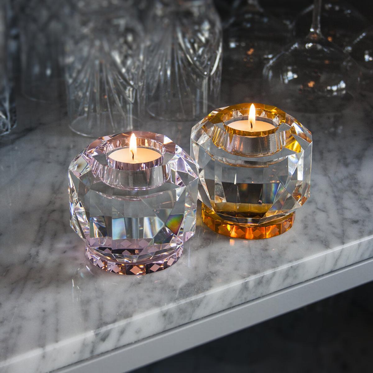 Reflections Copenhagen - Texas Crystal Tealight Holder - Clear/Rose