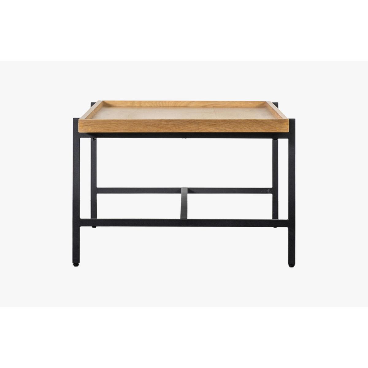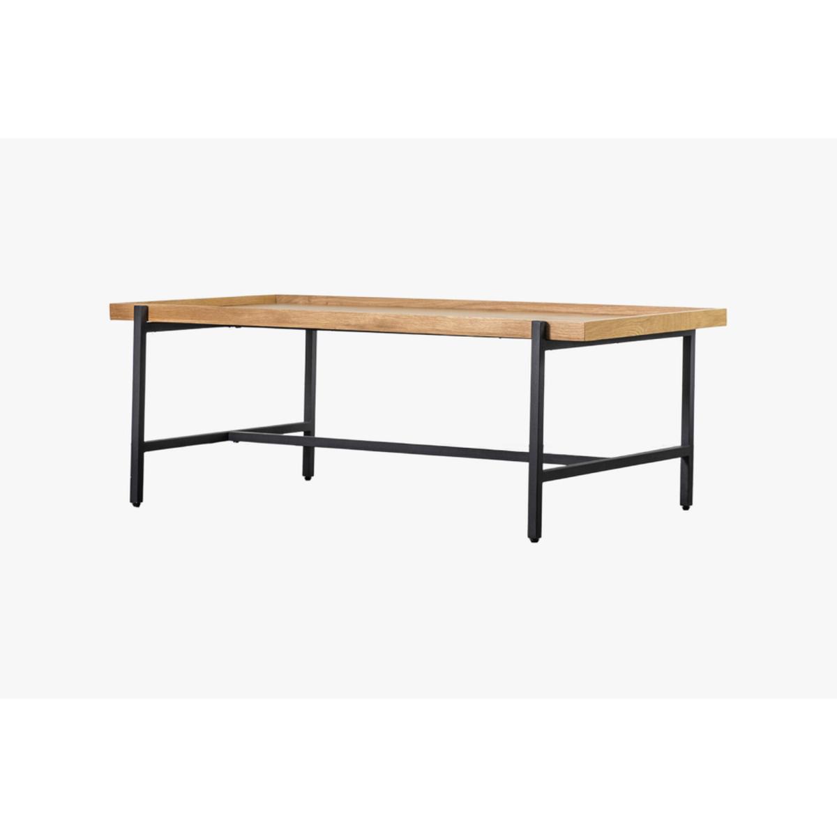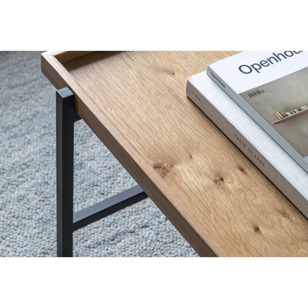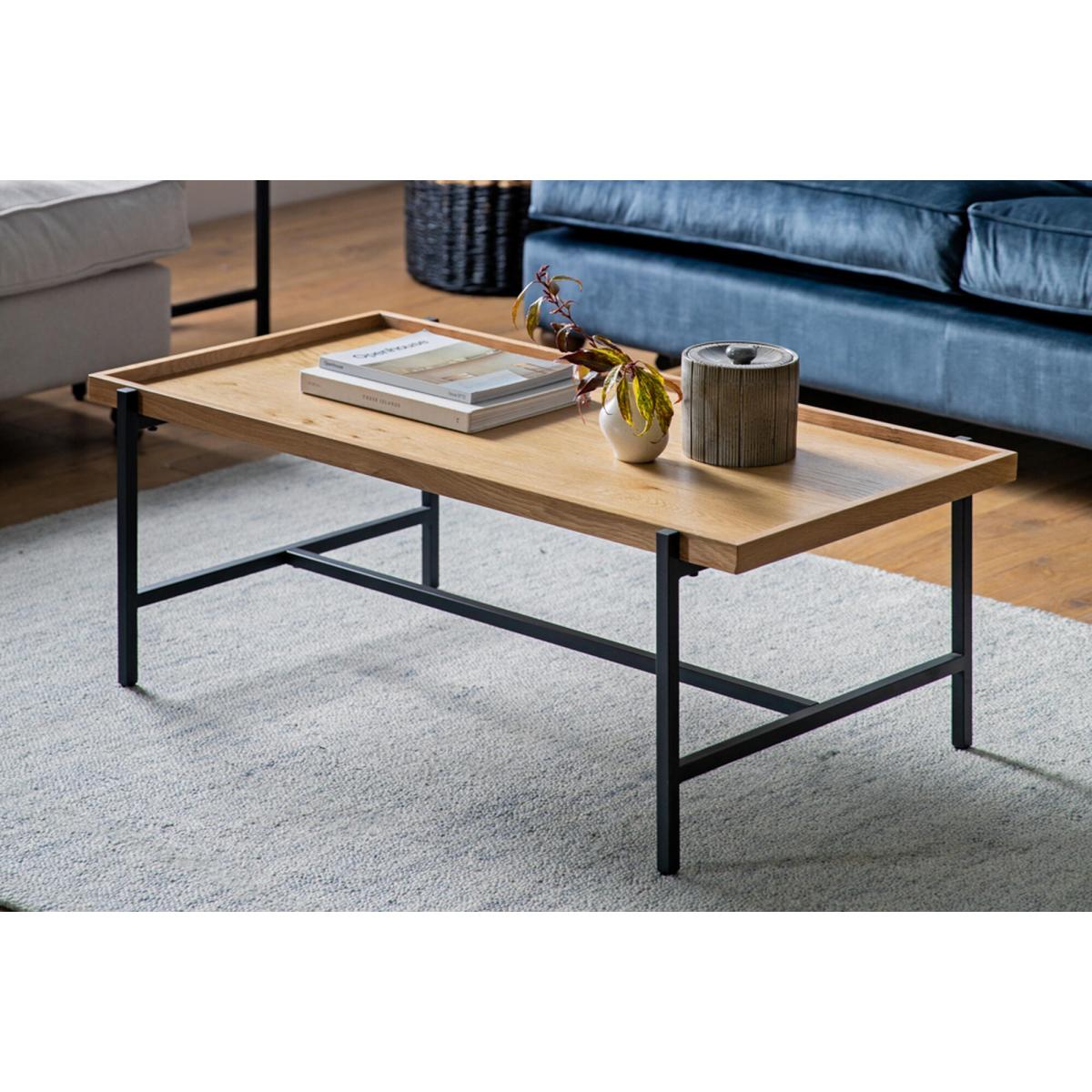 I’m a fan of this coffee table for its clean lines and mix of warm oak-effect wood with a slim black metal frame - it instantly grounds a space without feeling heavy. It works particularly well in Scandi, modern-industrial or minimalist living rooms, where its tray-style top adds a subtle utility. To style it, keep clutter to a minimum: place a couple of art or design books alongside a small ceramic vessel or low planter, and use a narrow tray to corral remotes or candles. Its raised edge also helps prevent items from sliding off, making it both practical and stylish.