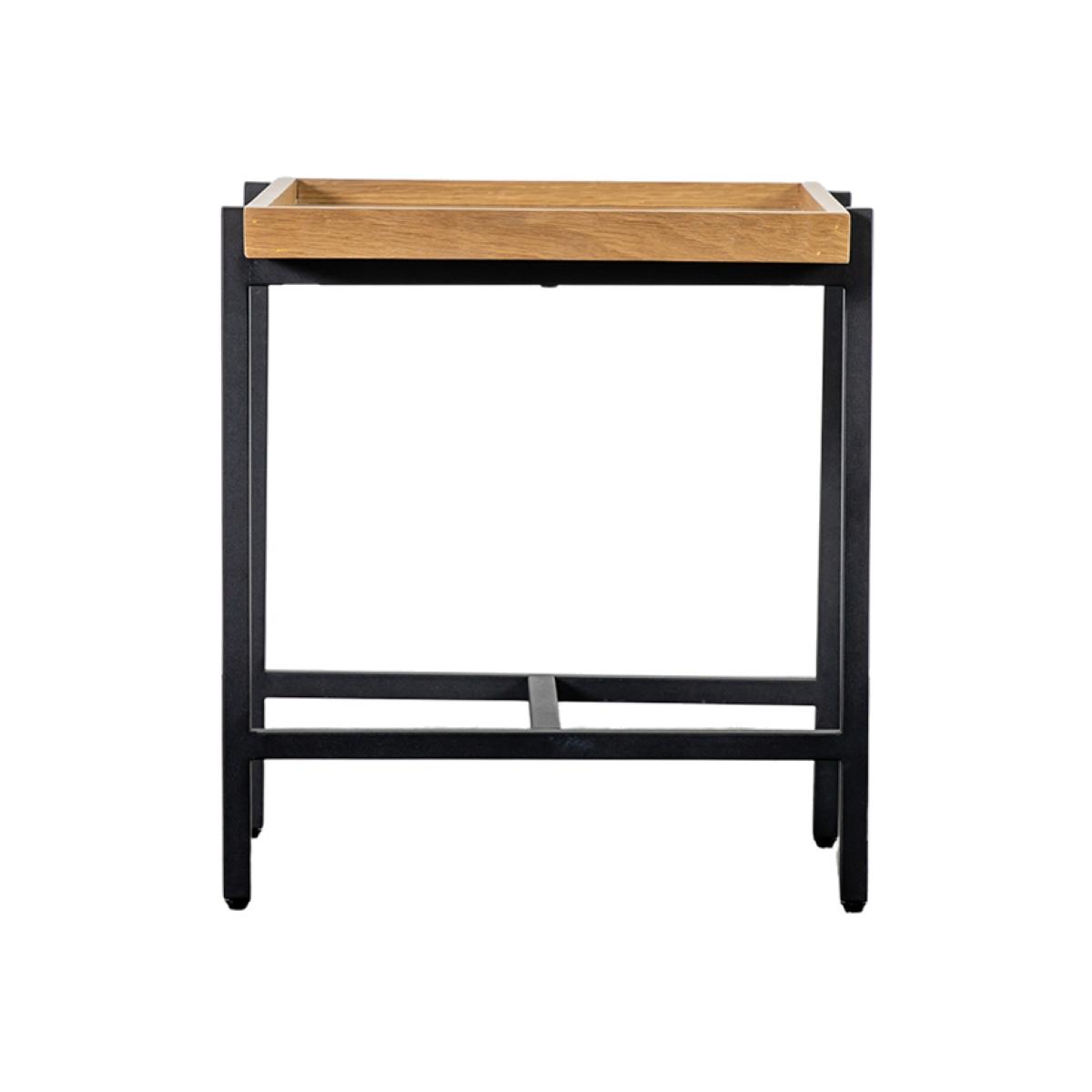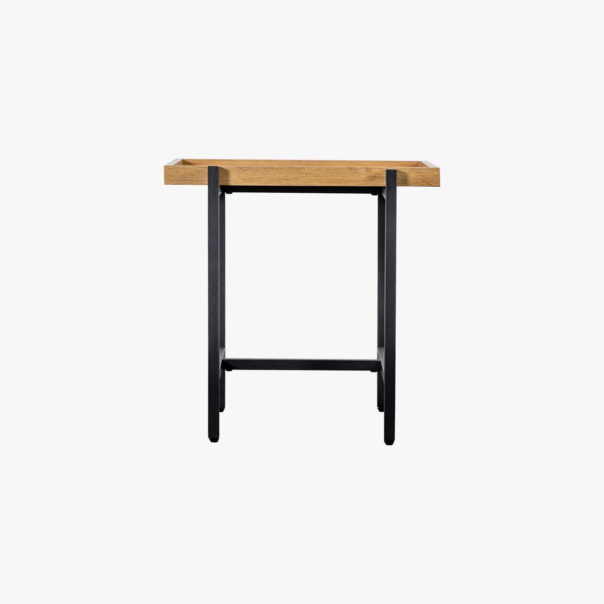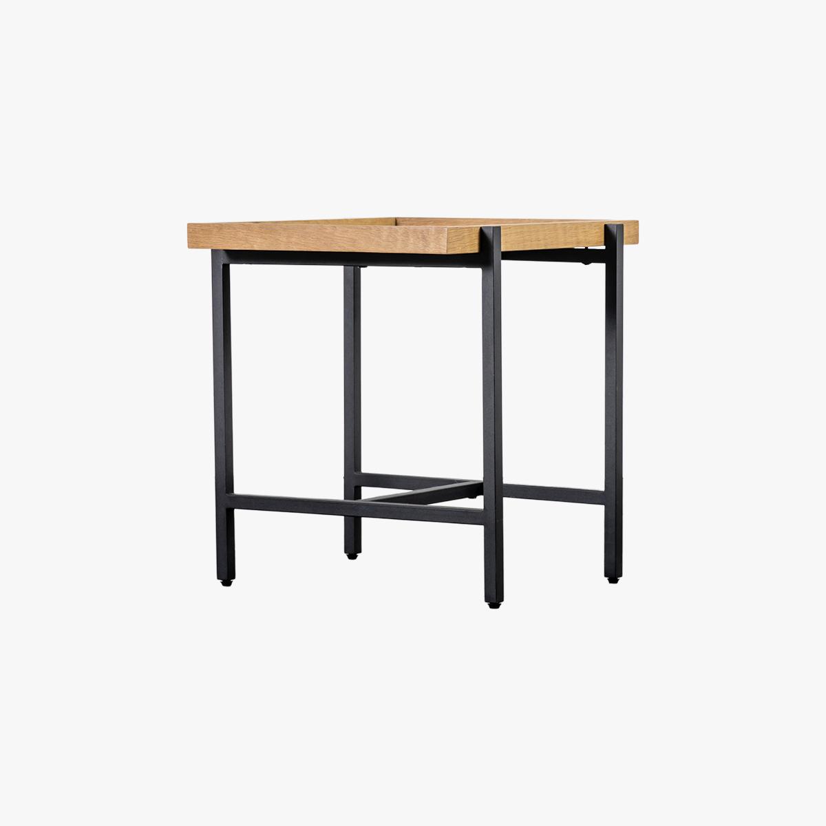 I’m a fan of this side table for its clean lines and mix of oak tray top with a slim black metal frame - it brings a subtle industrial edge without overwhelming a space. It sits equally well in a Scandi-inspired living room or a pared-back bedroom, pairing nicely with natural linens and muted colours. For styling, keep it simple: a low ceramic vase, a couple of coffee-table books and a small potted plant or candle. The raised tray edge means you can shift things around without worrying about items slipping off.