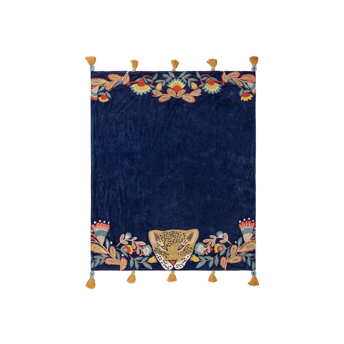 Regal Leopard Embroidered Tasselled Throw - Royal Blue