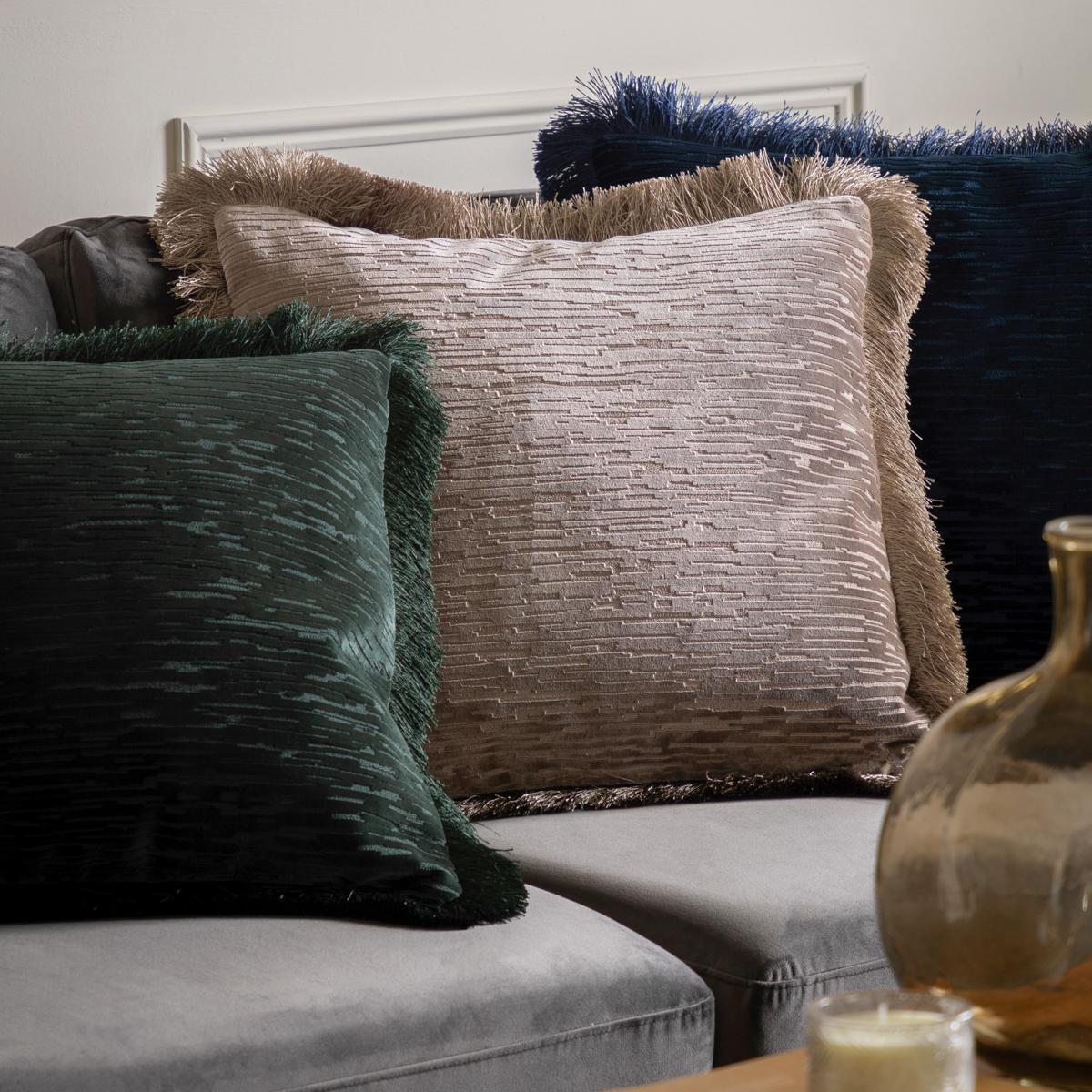 I love this cushion because its rich velvet texture and silver fringe add a touch of glamour while remaining versatile. It works beautifully in both contemporary and classic interiors, especially when you want to introduce a subtle hint of luxury without overpowering the space. To style it effectively, consider pairing with neutral sofas or armchairs to let the cushion be a statement piece, or combine with other metallic accents for a cohesive look. Practical tip: its plush feel makes it comfy for lounging, and the fringe detail adds a tactile dimension that lifts a plain sofa or bedspread effortlessly.