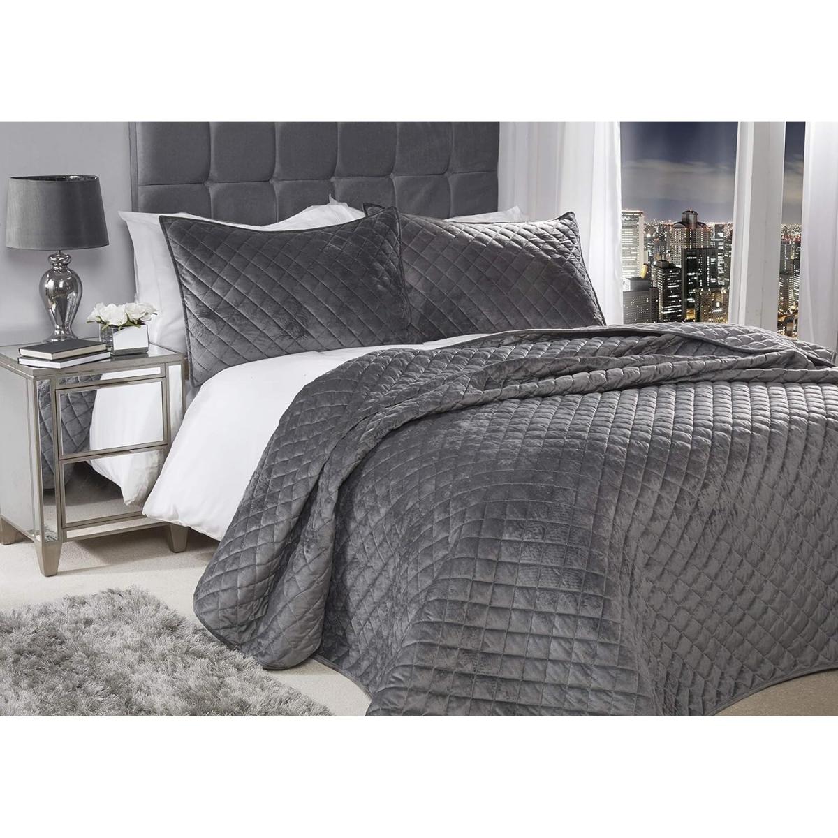These luxury crushed velvet quilted bedspread sets with piped edge and a cross stitch panel geometric finish feature a simple but classy design which will be the perfect addition to any bedroom.