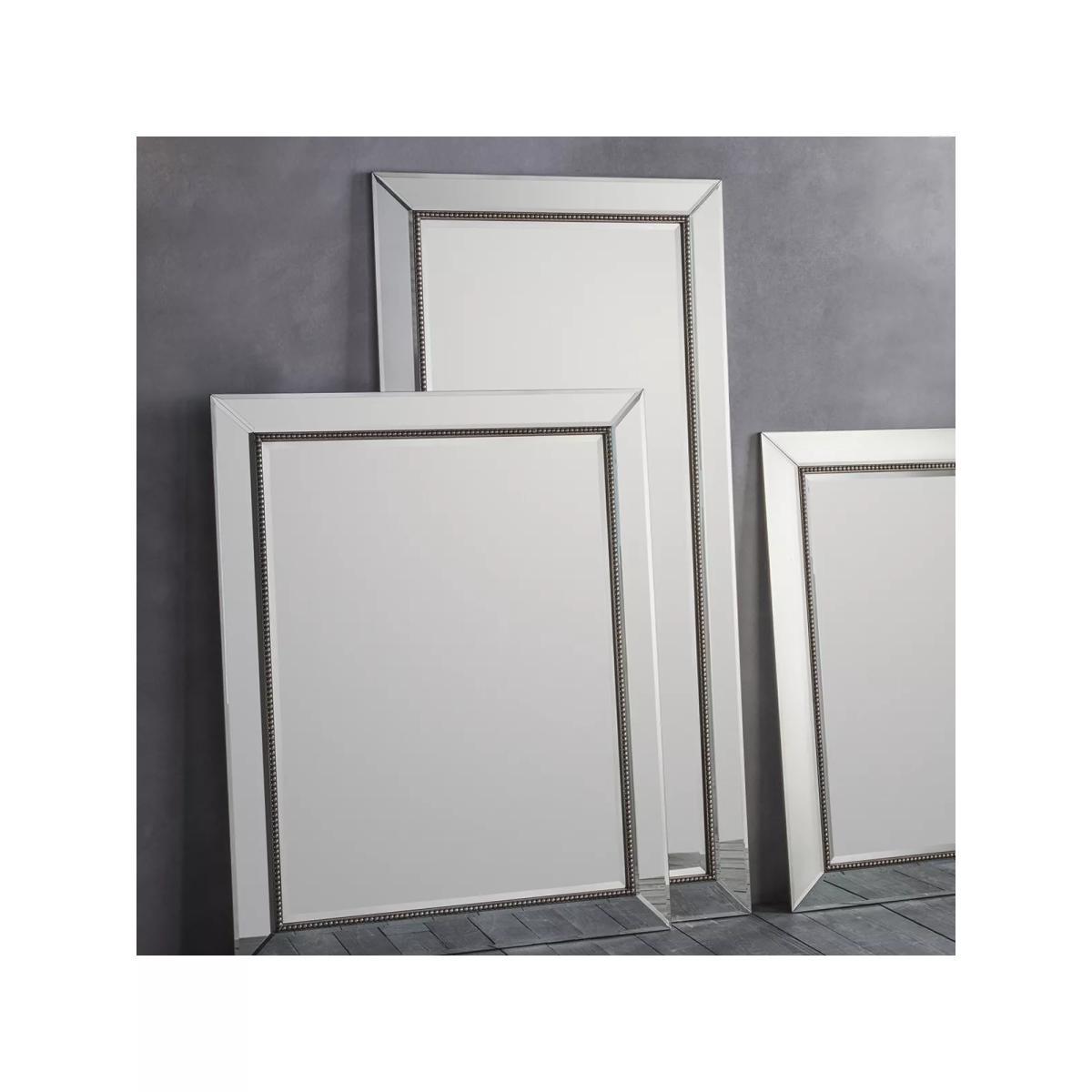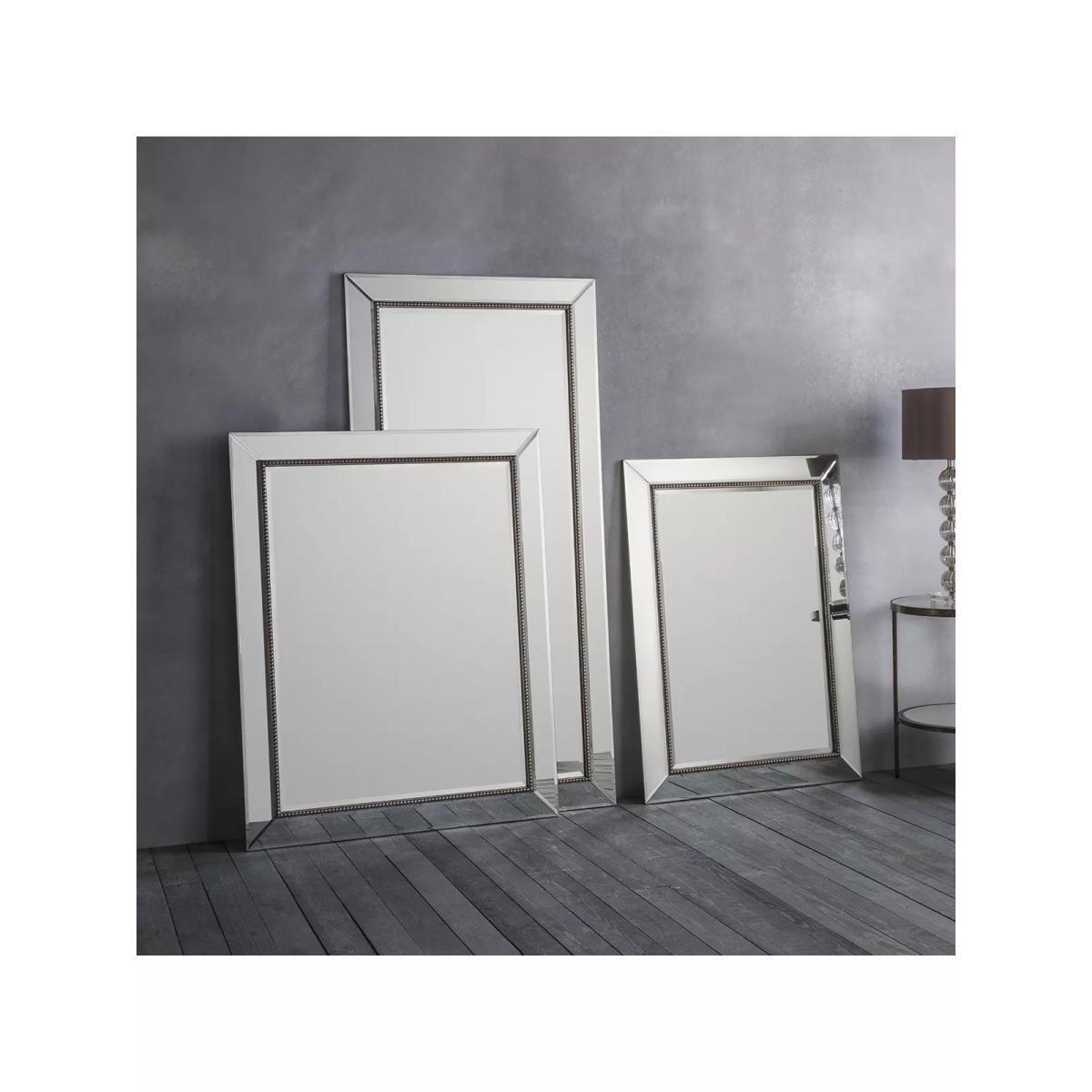 The Regent mirror has an angled profile with a wide bevelled-glass frame and beaded detailing along the inner edge. This rectangular mirror is ideal for capturing full-length reflections and leans against a wall without having to be wall-mounted.