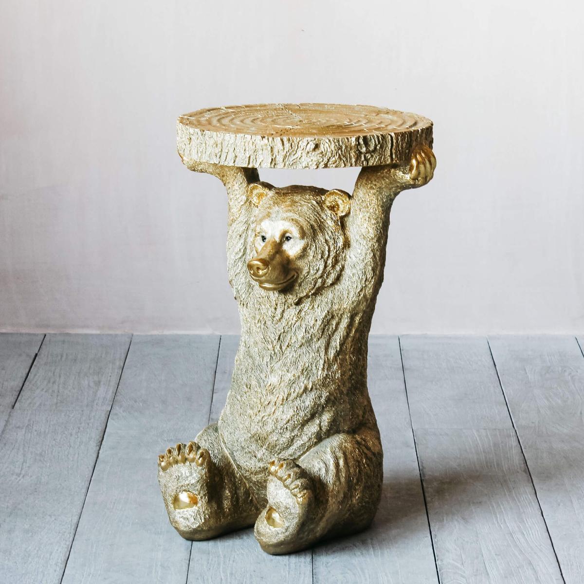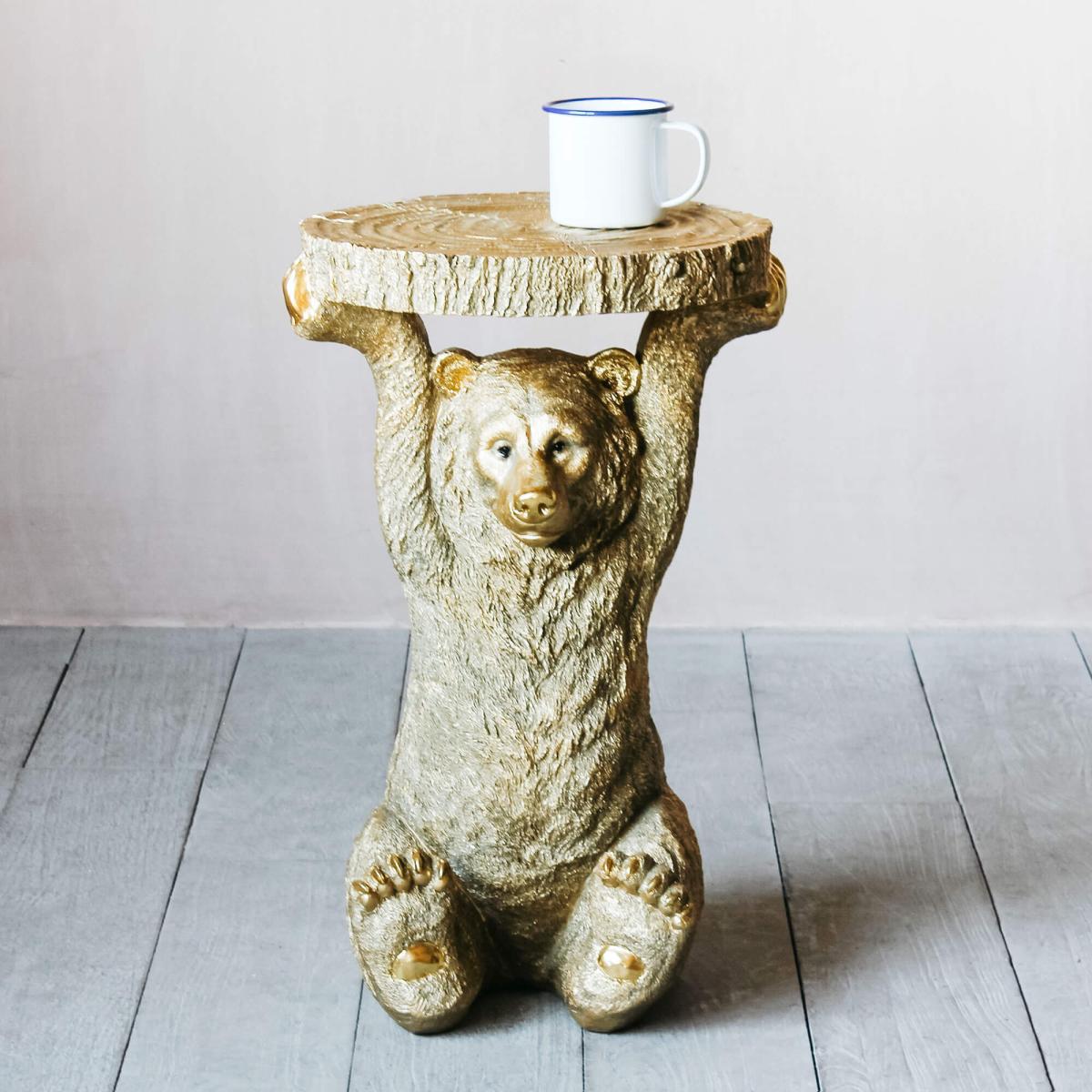 Inject a little woodland whimsy into your home with our golden bear side table, a quirky companion for a fairytale bedroom or living room.