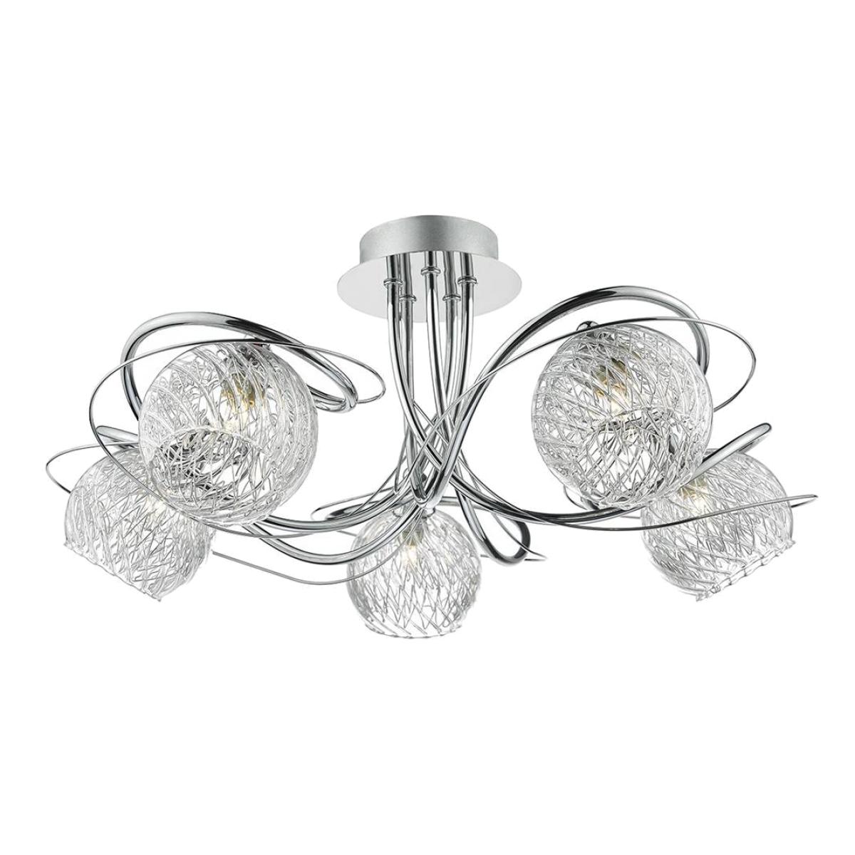 Modern ceiling light boasting a polished chrome finish. The Rehan 5 Light Ceiling Light is a gorgeous modern fitting. This semi-flush piece features a round ceiling plate, of which 5 curvaceous arms, with shadow wire detailing, are elegantly attached. Finished in polished chrome throughout, this decorative fitting boasts clear ripple glass shades with wire inserts in each, creating a beautiful sparkly effect when lit. We recommend using our 3w LED G9 capsule bulbs which are a great replacement for standard halogen bulbs. Modern ceiling light boasting a polished chrome finish. The Rehan 5 Light Ceiling Light is a gorgeous modern fitting. This semi-flush piece features a round ceiling plate, of which 5 curvaceous arms, with shadow wire detailing, are elegantly attached. Finished in polished chrome throughout, this decorative fitting boasts clear ripple glass shades with wire inserts in each, creating a beautiful sparkly effect when lit. We recommend using our 3w LED G9 capsule bulbs which are a great replacement for standard halogen bulbs.