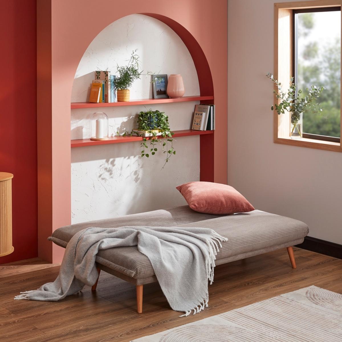 Designed with modern living in mind, the Reid Cord Click Clack Sofa Bed offers the ultimate seating and sleeping solution. Upholstered in soft corduroy, the gentle ridges of this fabric not only add a touch of sophistication but also provide a cozy and inviting feel, making this double sofabed a pleasure to lounge on.
