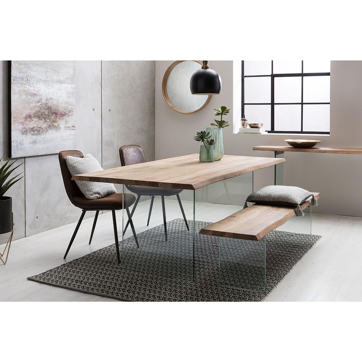 I’m a fan of this Reign table for its mix of a solid oak top with clear glass legs - it brings warmth without feeling bulky. It works equally well in minimalist, Scandinavian or contemporary settings and plays nicely against both muted and bold wall colours. For styling, keep the tabletop uncluttered: a simple linen runner, a low ceramic bowl or a sculptural vase look great here. Pair with chairs in mixed materials - metal-framed, upholstered or even leather - to add texture and keep the overall look light and inviting.