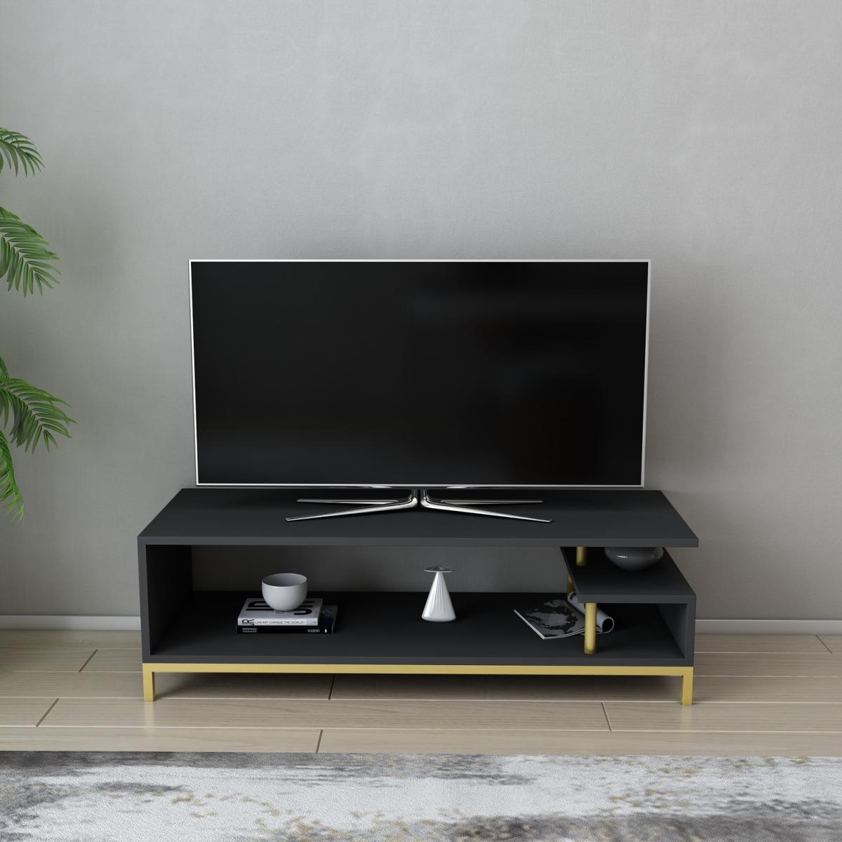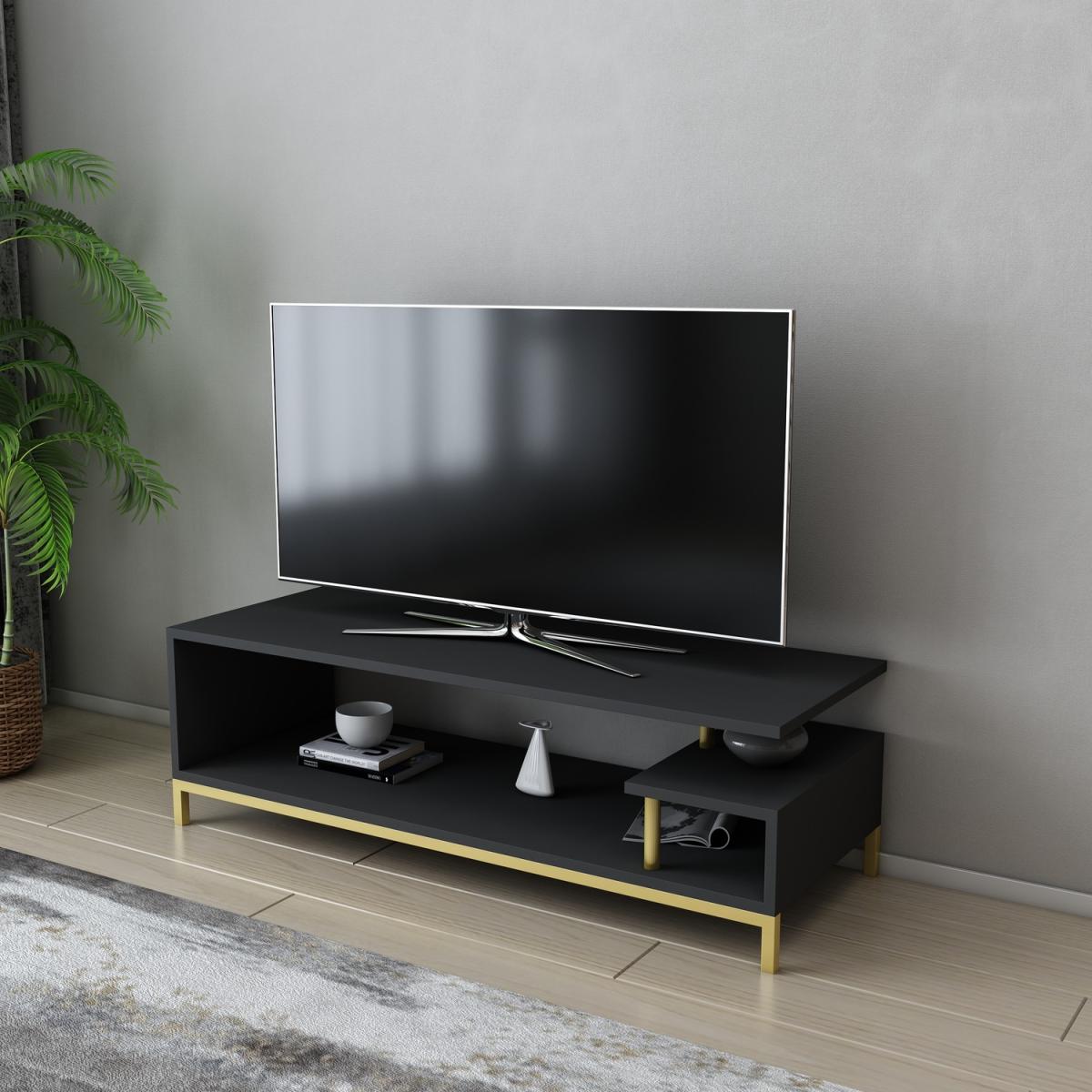 Reilly 120cm wide TV stand and media console for TVs up to 55" is a combination of functionality and on-trend design. It has lots of colour options and it will fit every room and every style in your home. It is made of 18mm thick quality manufactured wood and metal. Manufactured wood is banded with first-class 8 mm PVC edge banding tape. Overall, the media stand is manufactured using eco-friendly and health-friendly TSE-certified materials. The open shelf design will provide an additional storage compartment for books, magazines, and other decorative accessories, making your media entertainment centre tidy and organized. A durable solid structure will give you the opportunity to use this TV stand for a long time. It can easily be assembled and disassembled so you will not have a problem while moving to your new house. The product will be delivered to the customer in the original package as disassembled. It is designed to be assembled by the customer easily using simple household tools like a power drill or wrench. Assembly instruction and installation hardware are included in the package. For fast and error-free installation, product parts are numbered with stickers in accordance with the assembly guide.