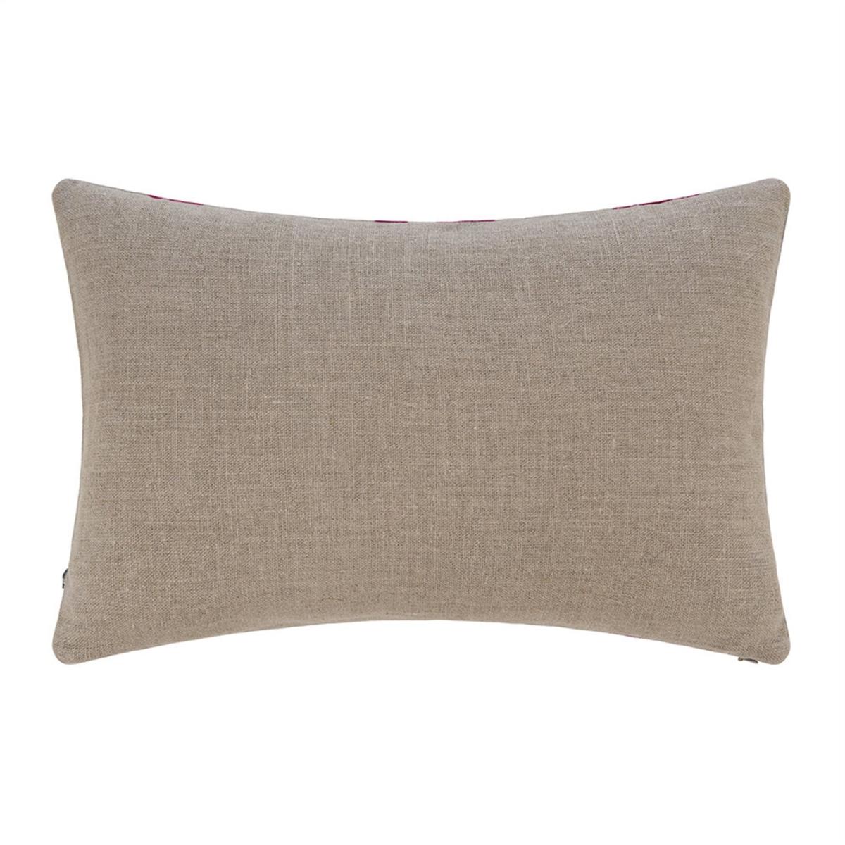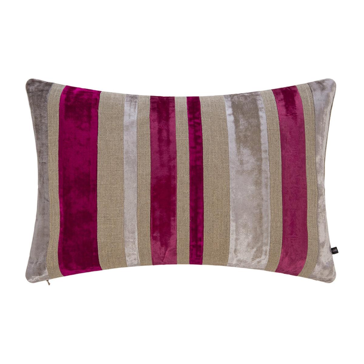 I love how the Reilly cushion brings a burst of jewel-toned pink and muted taupe into a neutral palette without overwhelming the scheme. Its velvet-effect stripes work especially well in contemporary or eclectic settings, adding texture and a point of interest on a plain sofa or armchair. For styling, pair it with plain cushions in complementary shades of grey or beige to let the stripes stand out. You can also layer it in front of a larger square cushion in a similar hue to create depth, or use two on a bench for an instant colour update in an entryway.
