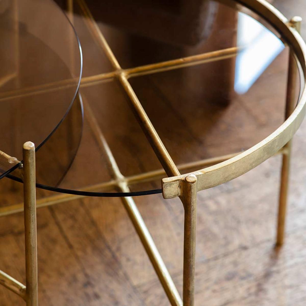 Expertly crafted brass plated metal frame with an elegant amber glass top, this Reims Coffee Table Set is ideal for those who love entertaining at home and need an extra surface or two in a hurry. The circular surface is perfect for serving drinks and nibbles while the criss-cross frame helps create a feeling of light and space. Use next to a comfy armchair in the living room or open-plan space and add a table lamp for extra ambience.