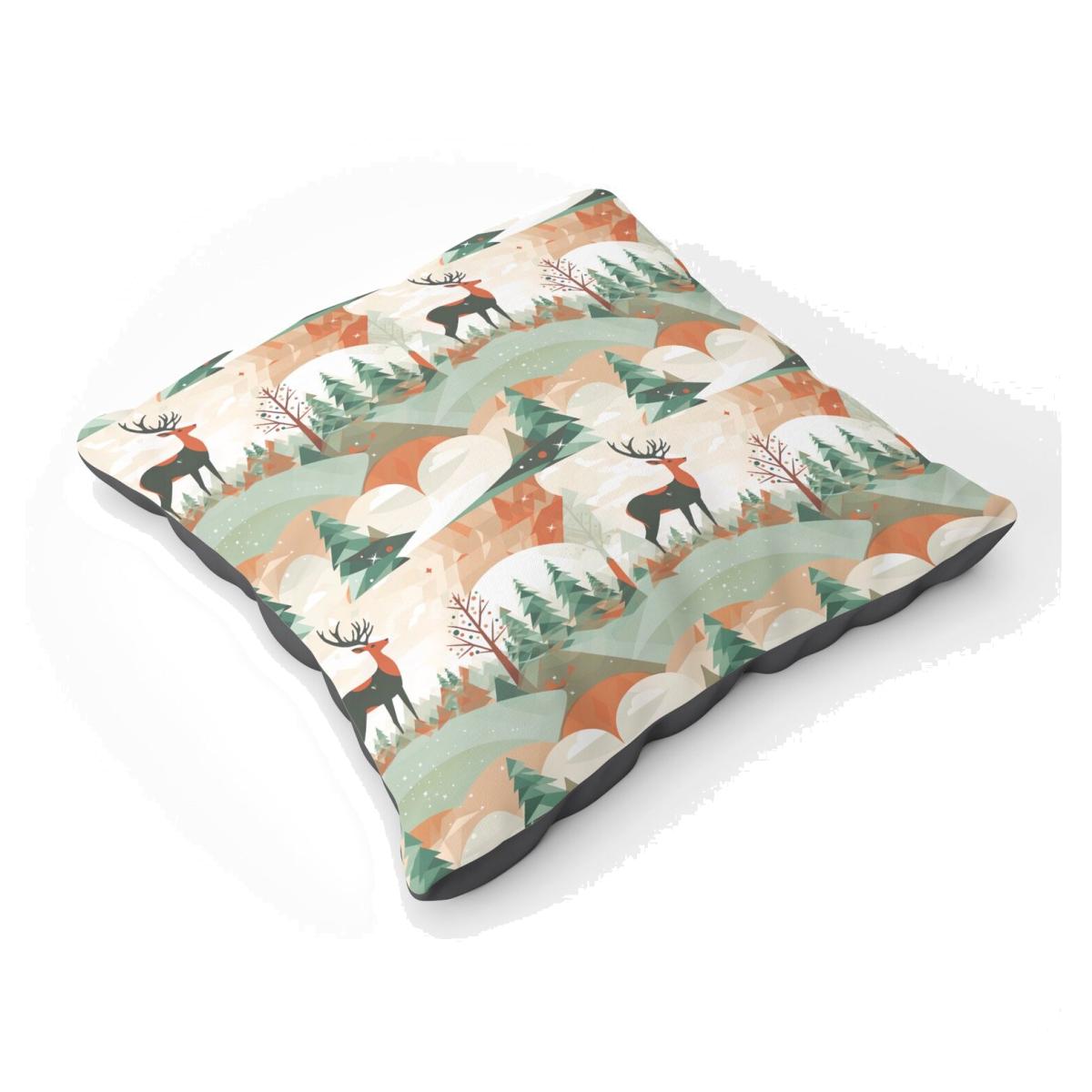Reindeer On A Snowy Landscape Pattern Floor Cushion - Green