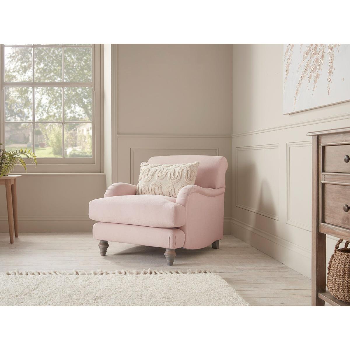 The restful silhouette showcases handcrafted details such as hand folded pleats and polished turned hardwood legs. The armchair has a gently scrolled backrest and deep feather and foam filled seat cushion. The legs are in a limewashed oak and your chair will be upholstered by hand, especially for you. The range also includes two and three seater sofas, a chaise sofa, loveseat, and an ottoman. Pictured here in our Soft Rose Cotton Linen our Reine collection can be upholstered in a choice of 34 distinctive shades and six fabrics to suit your style. Read our Upholstery FAQs View our full Upholstery Terms and Conditions