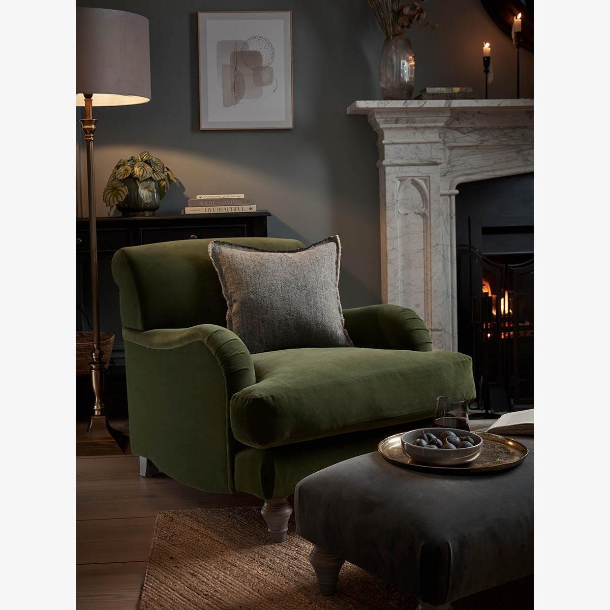 The restful silhouette showcases handcrafted details such as hand folded pleats and polished turned hardwood legs. The armchair has a gently scrolled backrest and deep feather and foam filled seat cushion. The legs are in a limewashed oak and your chair will be upholstered by hand, especially for you. The range also includes two and three seater sofas, a chaise sofa, loveseat, and an ottoman. Pictured here in our Soft Rose Cotton Linen our Reine collection can be upholstered in a choice of 34 distinctive shades and six fabrics to suit your style. Read our Upholstery FAQs View our full Upholstery Terms and Conditions