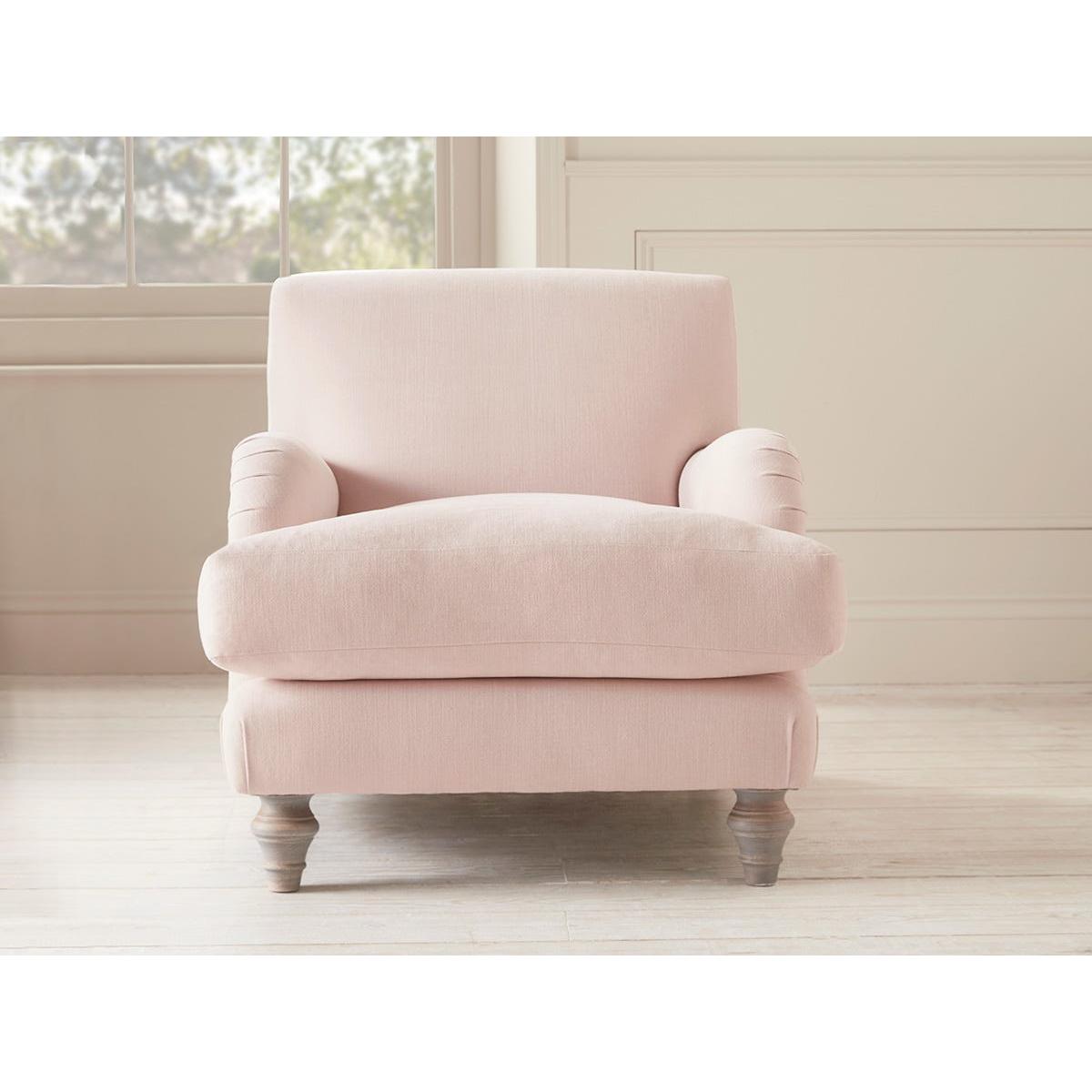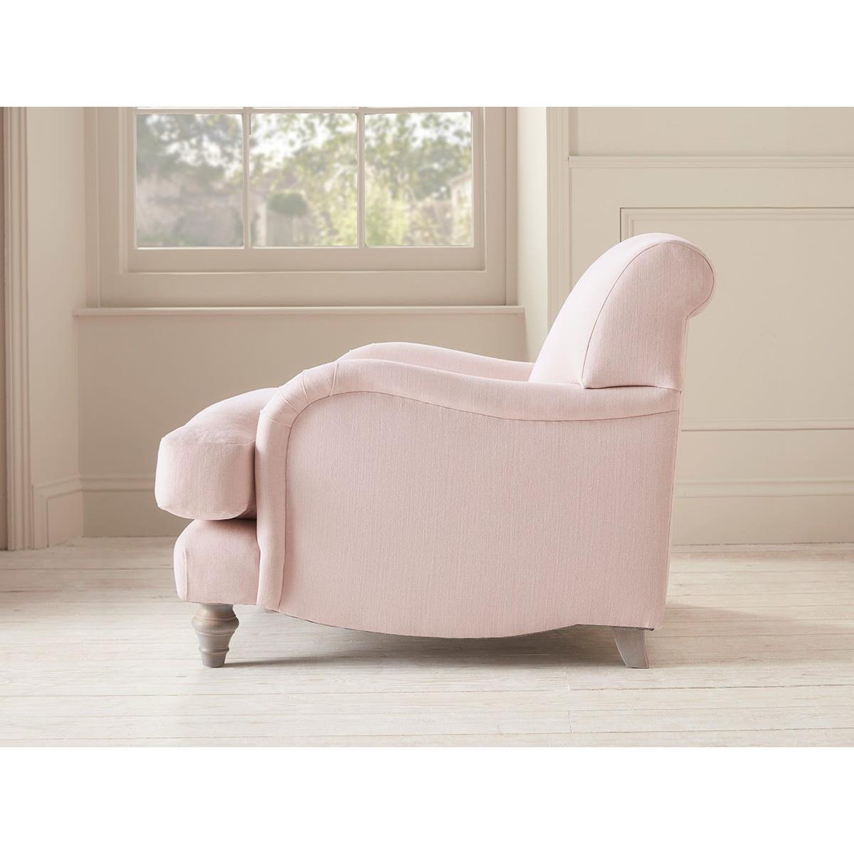 The restful silhouette showcases handcrafted details such as hand folded pleats and polished turned hardwood legs. The armchair has a gently scrolled backrest and deep feather and foam filled seat cushion. The legs are in a limewashed oak and your chair will be upholstered by hand, especially for you. The range also includes two and three seater sofas, a chaise sofa, loveseat, and an ottoman. Pictured here in our Soft Rose Cotton Linen our Reine collection can be upholstered in a choice of 34 distinctive shades and six fabrics to suit your style. Read our Upholstery FAQs View our full Upholstery Terms and Conditions