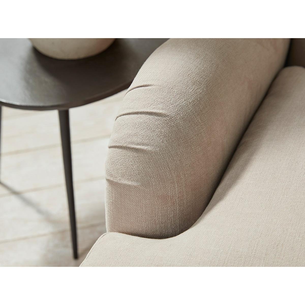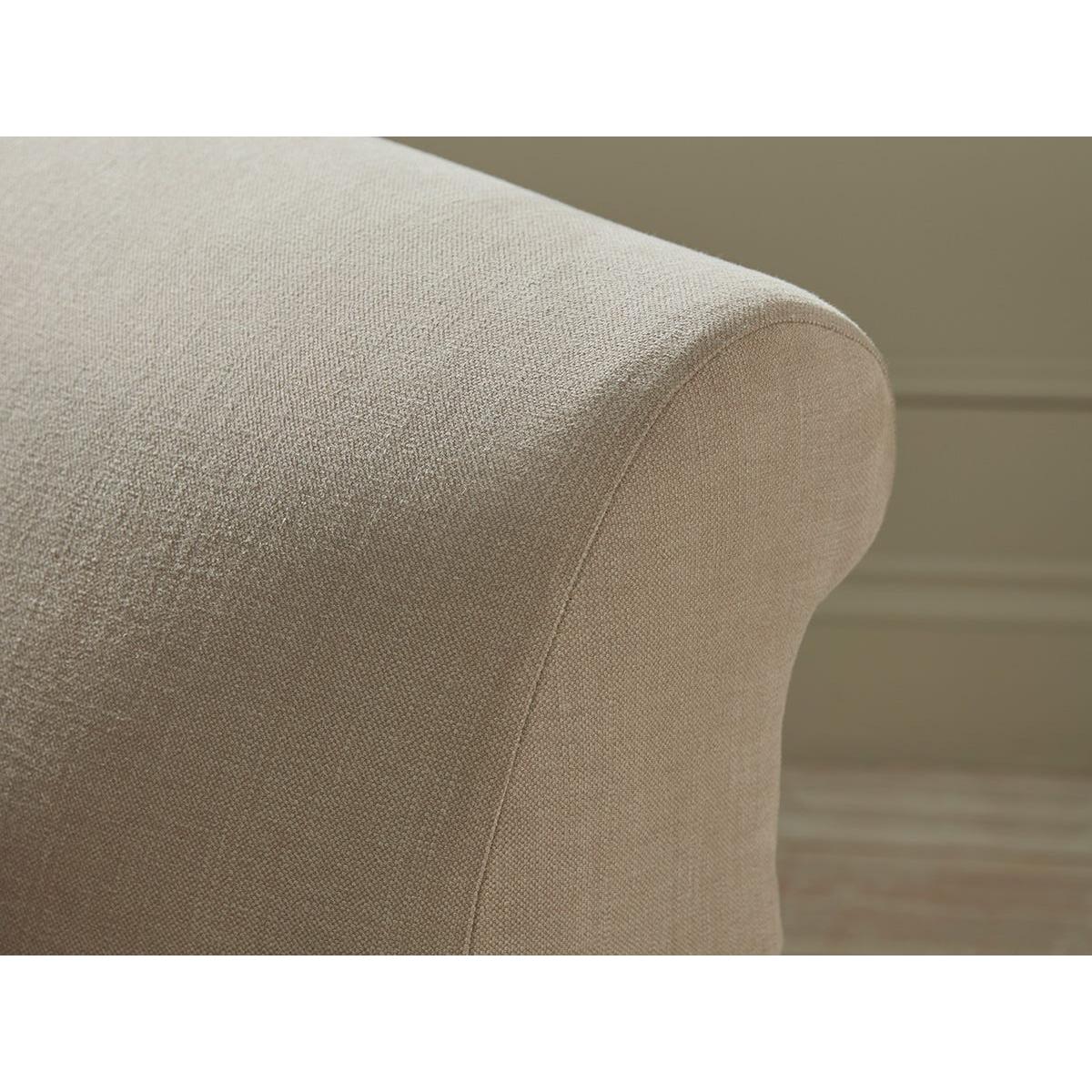 This restful silhouette showcases handcrafted details such as hand folded pleats and polished turned hardwood legs. The Reine Loveseat features all the beauty of the armchair with that bit of extra space to fully luxuriate alone or cuddle up with someone precious. The seat has a deep feather and foam filled base making it a joy to sink into and the legs are in a limewashed oak finish. Your loveseat will be upholstered by hand, especially for you. The range also includes two and three seater sofas, an ottoman and an armchair. Pictured here in our Taupe Cotton Linen our Reine collection can be upholstered in a choice of 34 distinctive shades and six fabrics to suit your style. Read our Upholstery FAQs View our full Upholstery Terms and Conditions