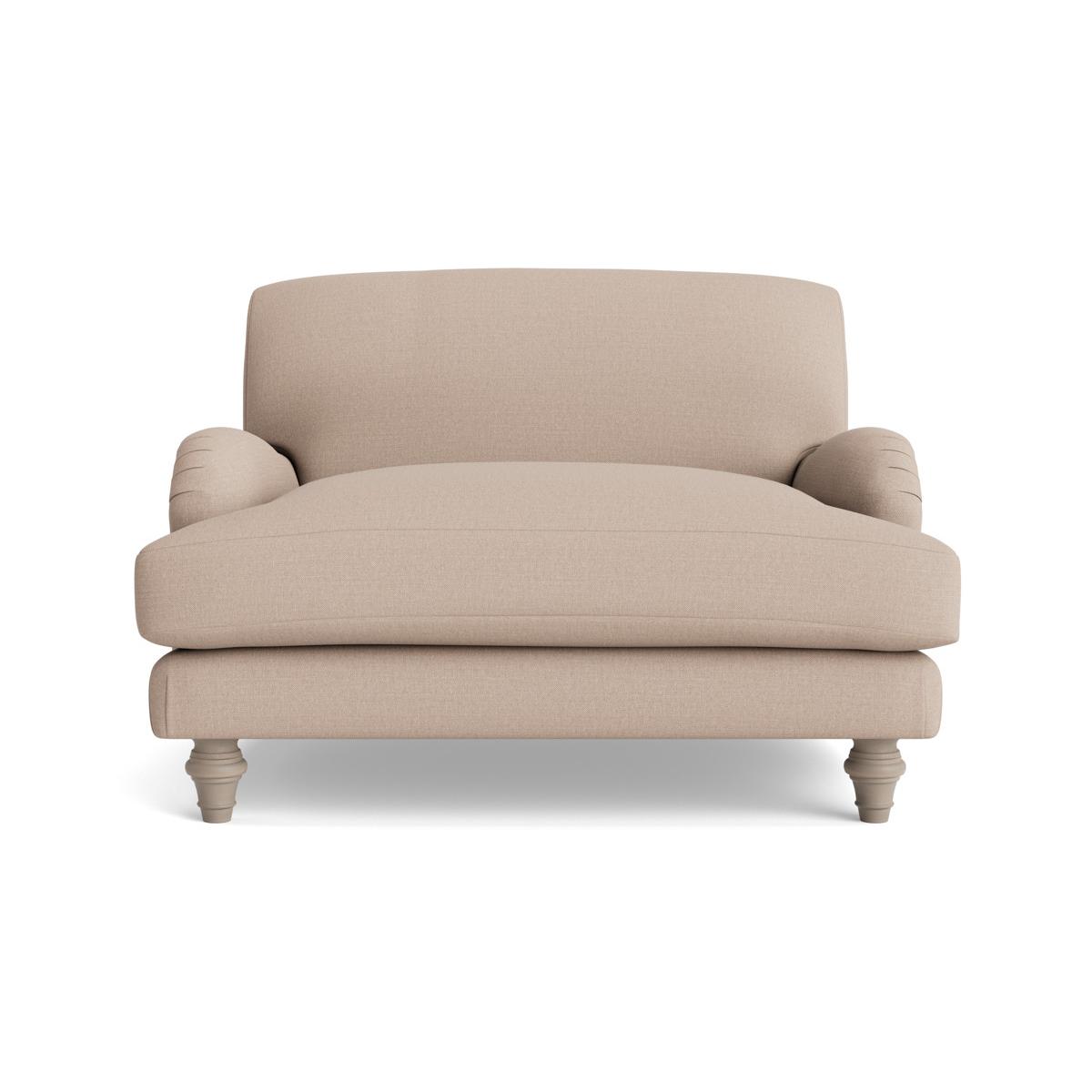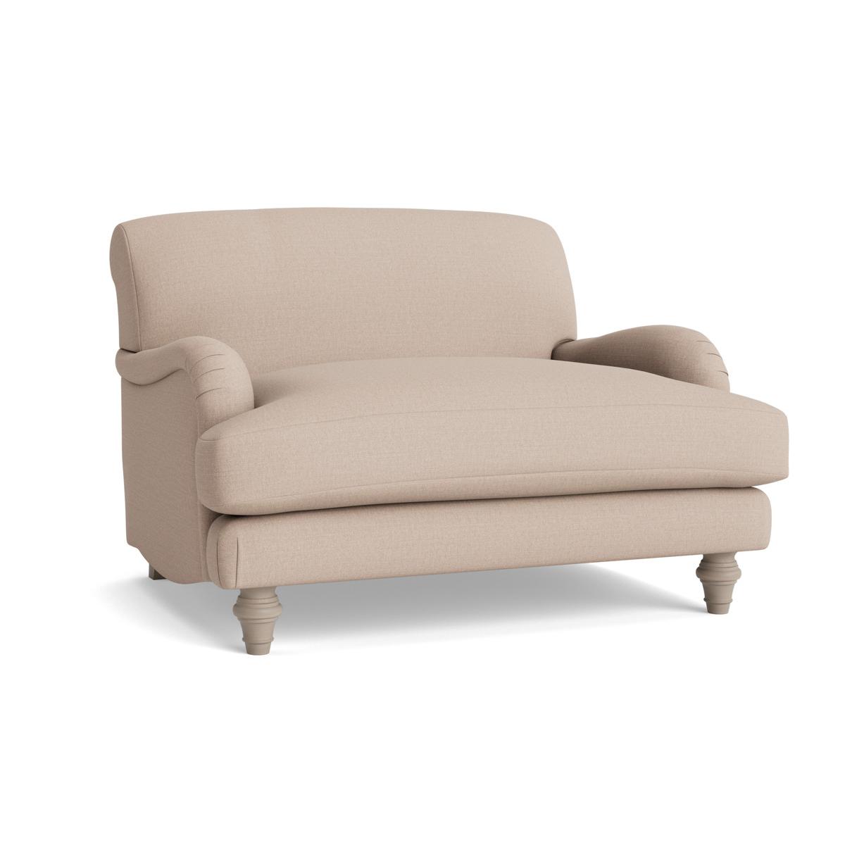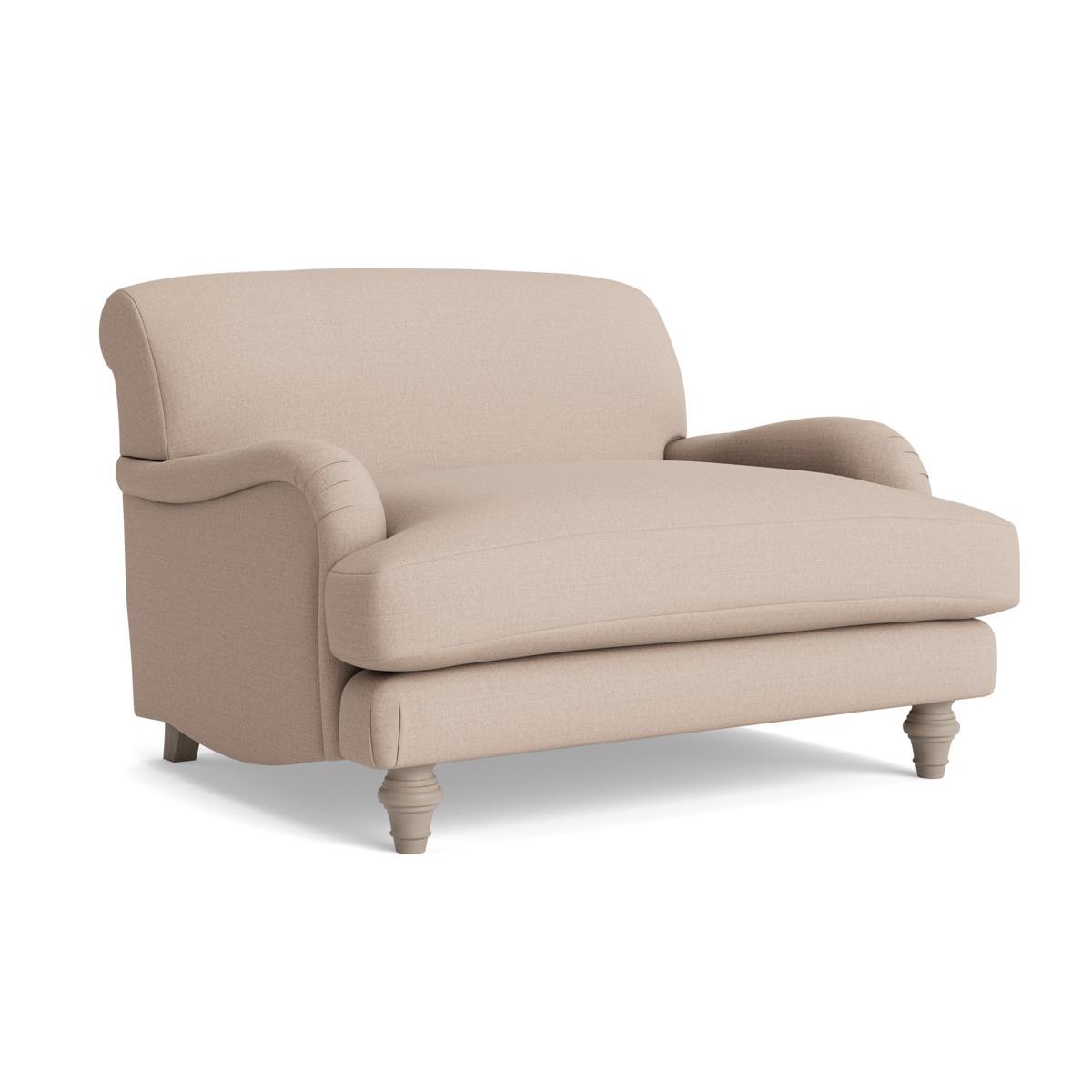 This restful silhouette showcases handcrafted details such as hand folded pleats and polished turned hardwood legs. The Reine Loveseat features all the beauty of the armchair with that bit of extra space to fully luxuriate alone or cuddle up with someone precious. The seat has a deep feather and foam filled base making it a joy to sink into and the legs are in a limewashed oak finish. Your loveseat will be upholstered by hand, especially for you. The range also includes two and three seater sofas, an ottoman and an armchair. Pictured here in our Taupe Cotton Linen our Reine collection can be upholstered in a choice of 34 distinctive shades and six fabrics to suit your style. Read our Upholstery FAQs View our full Upholstery Terms and Conditions