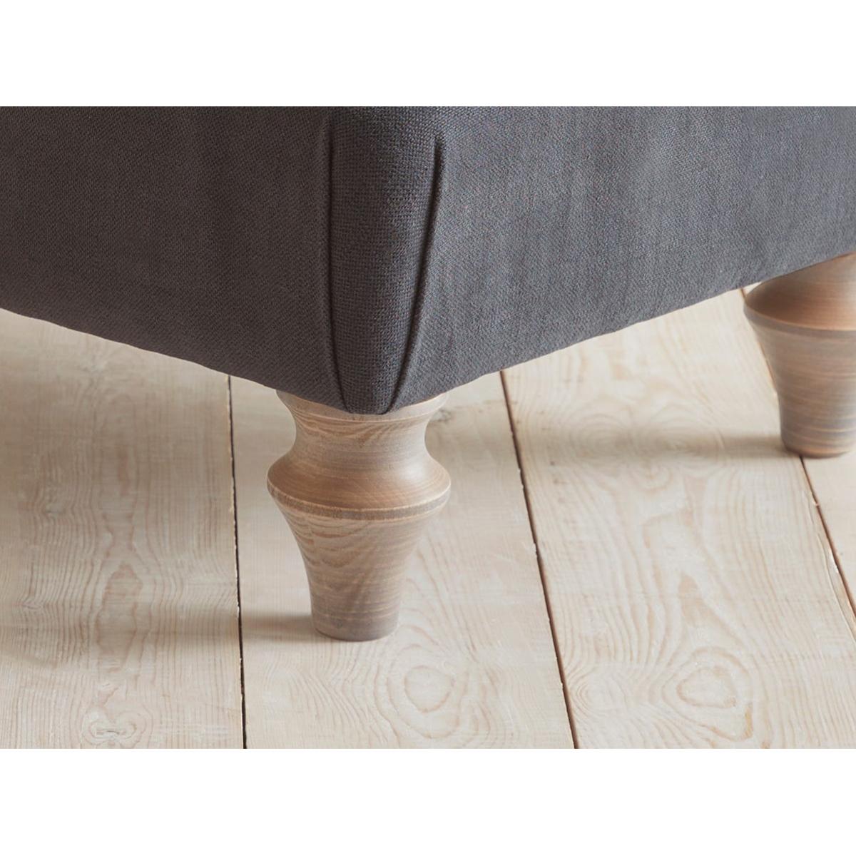 An essential finishing touch for your living room scene, the Reine ottoman has a deep feather and foam filled base making it the perfect footstool or occasional perch. Hand folds to the corners add a smart edge and the legs are in a limewashed oak finish. Your ottoman will be upholstered by hand, especially for you. The range also includes two and three seater sofas, a chaise sofa, loveseat, and an armchair. Pictured here in our Nordic Blue Cotton Linen our Reine collection can be upholstered in a choice of 34 distinctive shades and six fabrics to suit your style. Read our Upholstery FAQs View our full Upholstery Terms and Conditions
