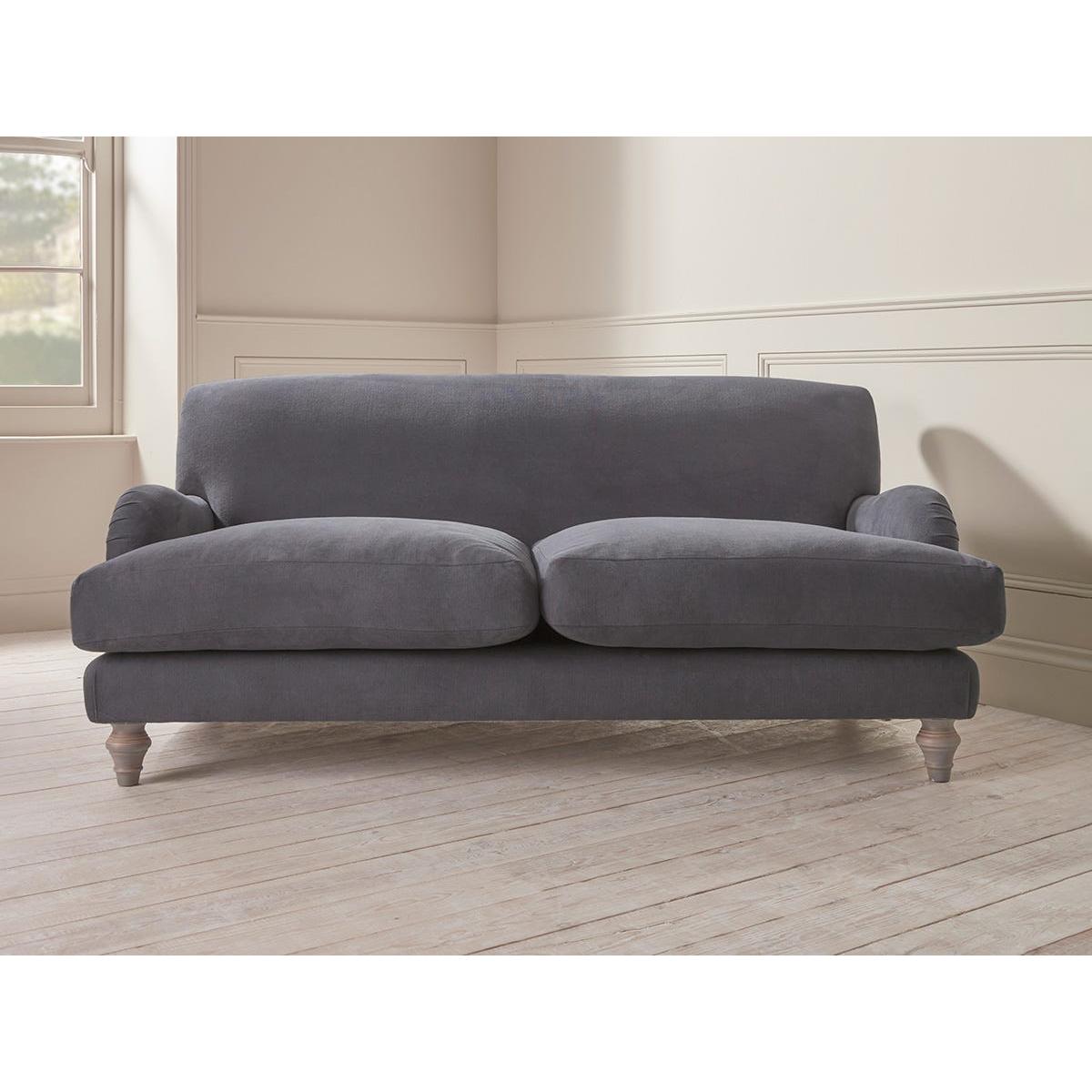 Our Reine sofas offer generous proportions supported by soft curves, low cut back arms and deep seats. The restful silhouette showcases handcrafted details such as hand folded pleats and polished turned hardwood legs. The sofa, available as a two or three seater, features a gently scrolled sweeping sprung backrest and deep feather and foam filled seat cushions. The legs are in a limewashed oak and your sofa will be upholstered by hand, especially for you. The range also includes a chaise sofa, loveseat, armchair and ottoman. Pictured here in our Nordic Blue Cotton Linen our Reine collection can be upholstered in a choice of 34 distinctive shades and six fabrics to suit your style. For further information on the range, please select one of the following:Order a fabric swatch. Read our Upholstery FAQs View our full Upholstery Terms and Conditions