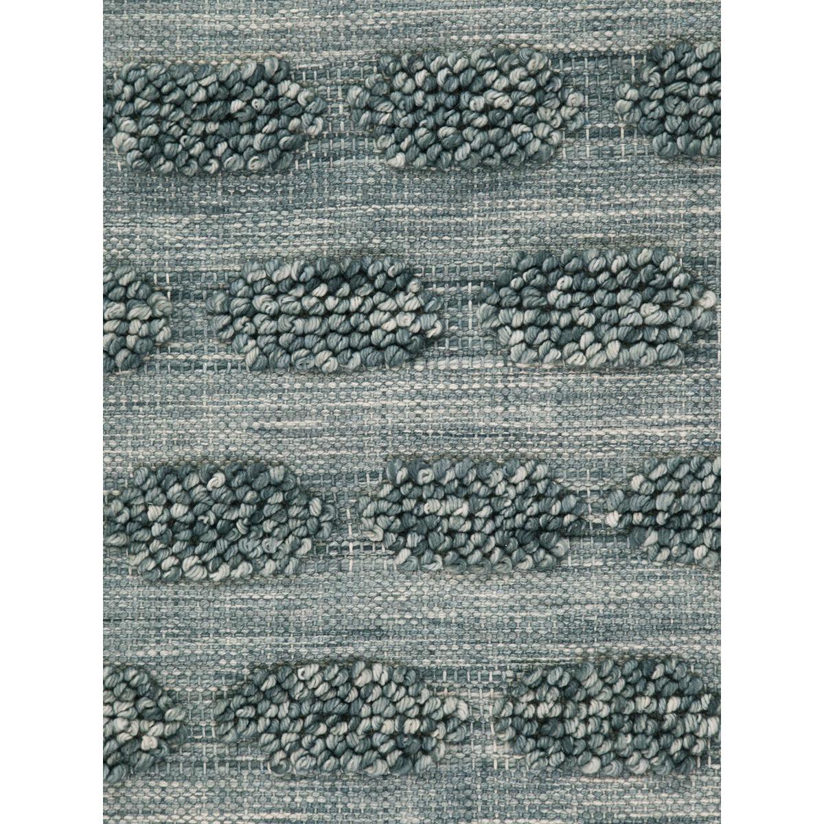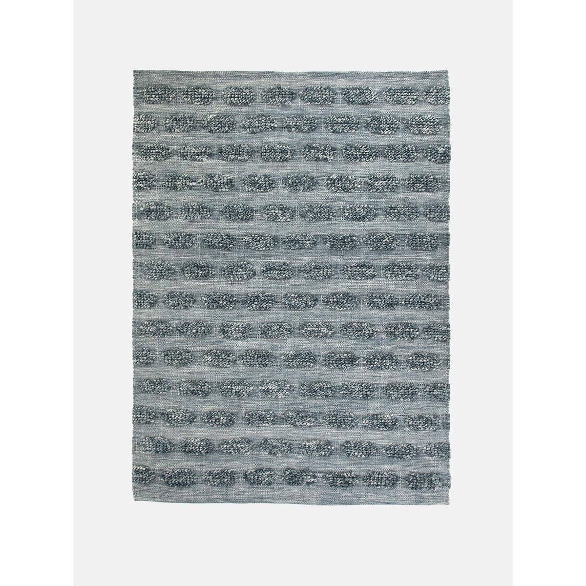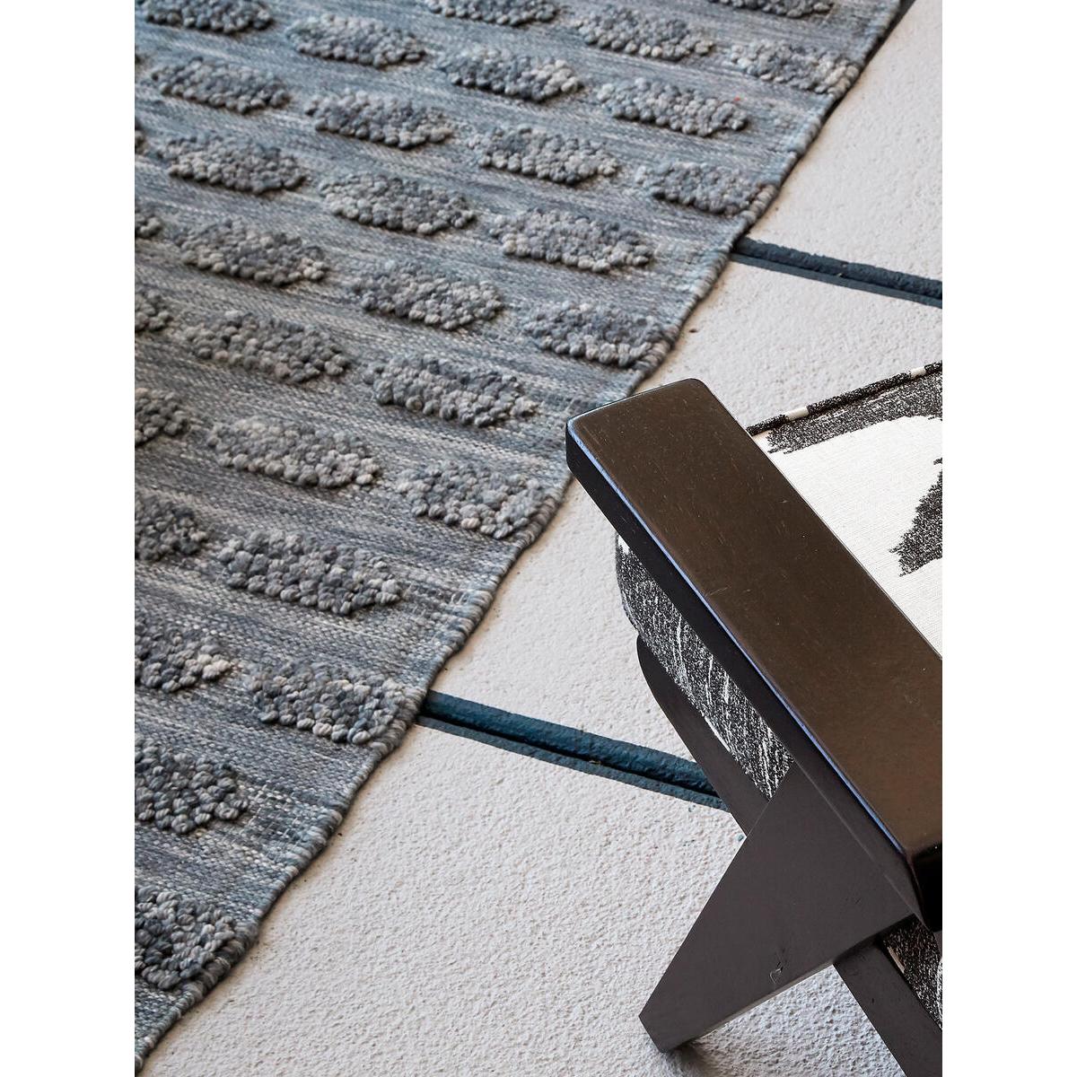 Outdoor rug with textured loop sections. Space dyeing technique creates subtle tonal variations and makeseach rug unique. Made from recycled plastic bottles. Feel and look of wool but washable, water resistant and hardwearing. Hand woven by skilled craftspeople. Suitable for outdoor and indoor use. Used on the terrace at White City House. Also available in natural. Please note: Due to the space dyeing technique the colours may varyslightly from piece to piece.