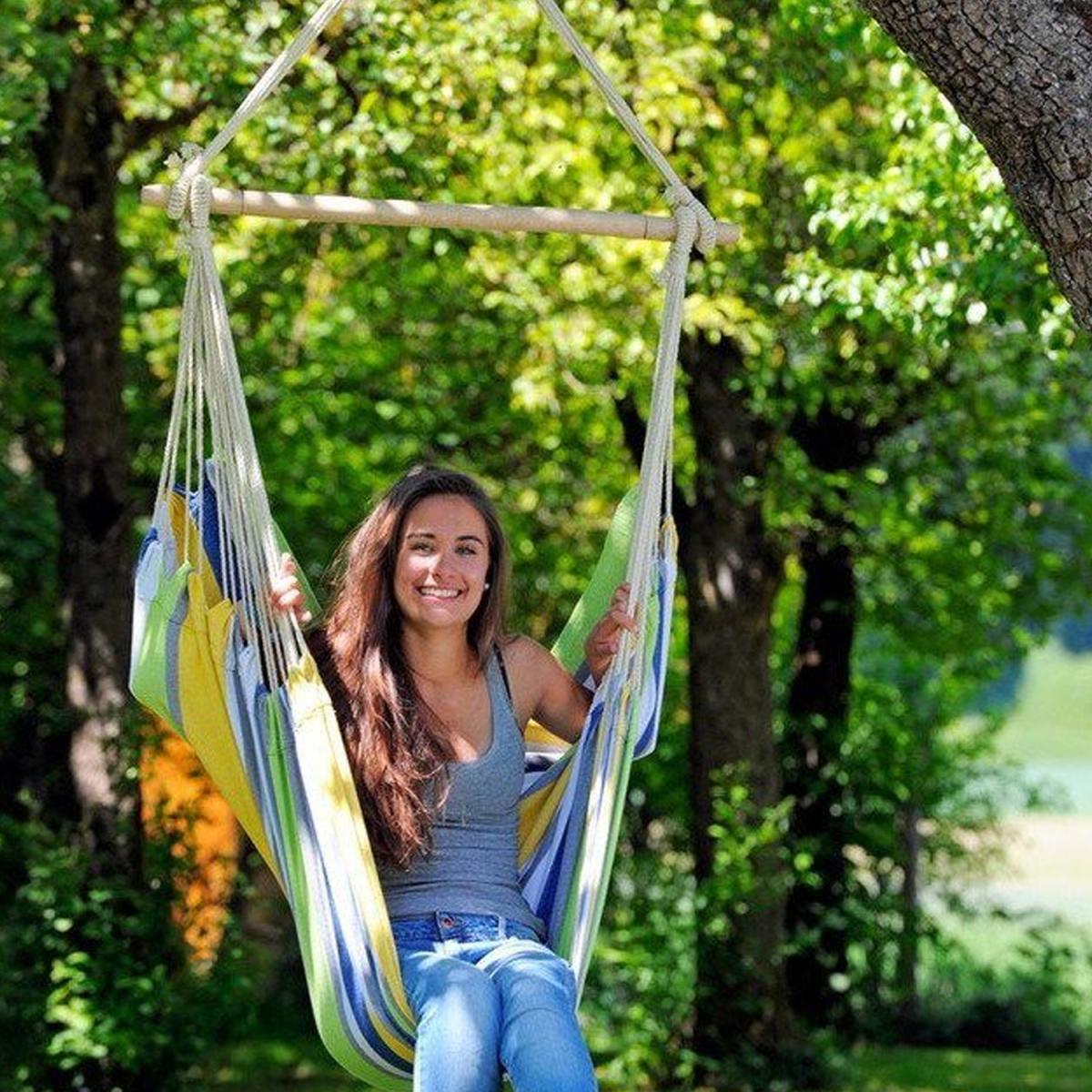In summary, in hot shades of red, orange and yellow the Relax Hammock Chair is extremely comfortable yet robust. The ultimate hammock chair experience for indoors or outside, it weighs only 1.8 kg and holds up to 120 kg in weight so chill out confidently and in great style.