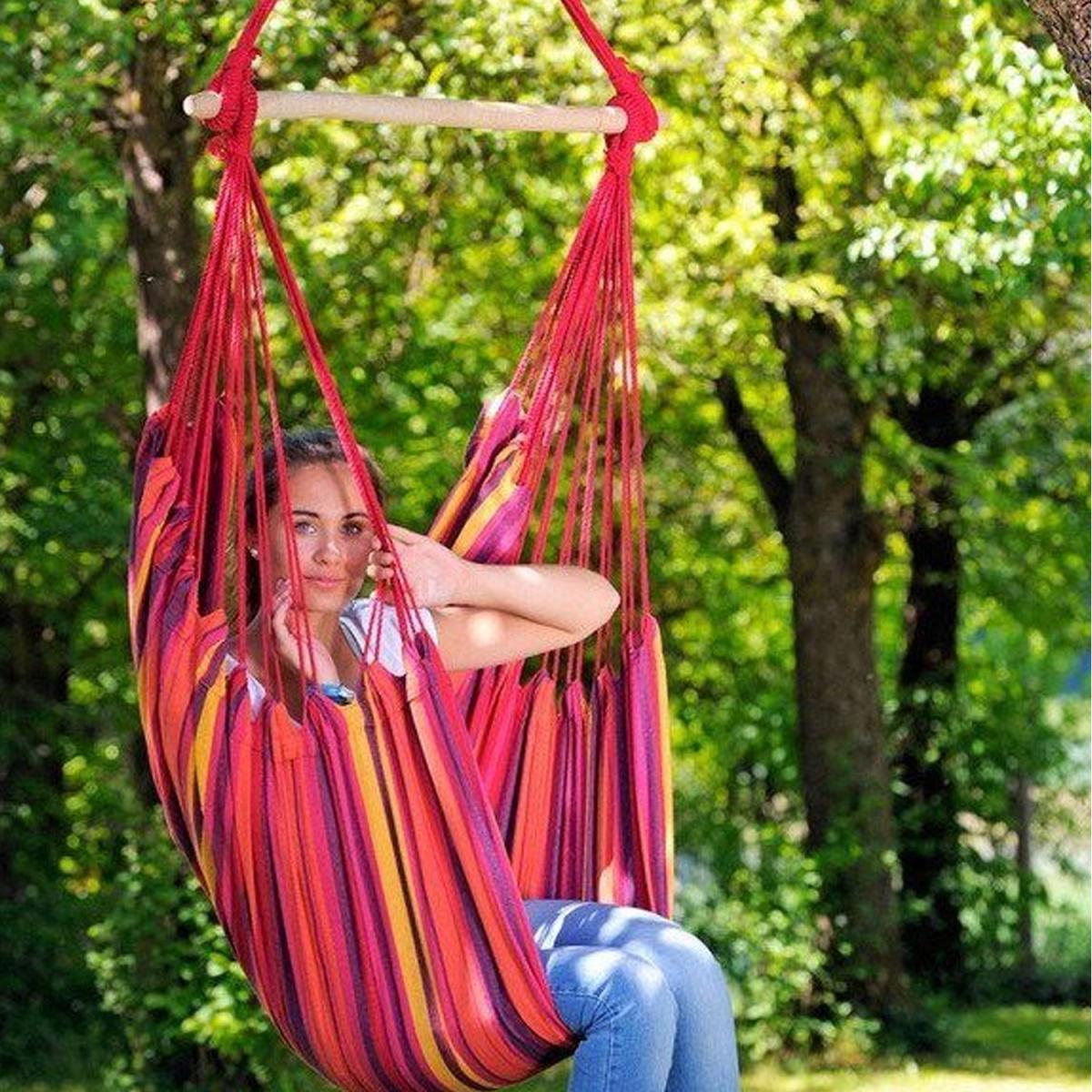 In summary, in hot shades of red, orange and yellow the Relax Hammock Chair is extremely comfortable yet robust. The ultimate hammock chair experience for indoors or outside, it weighs only 1.8 kg and holds up to 120 kg in weight so chill out confidently and in great style.