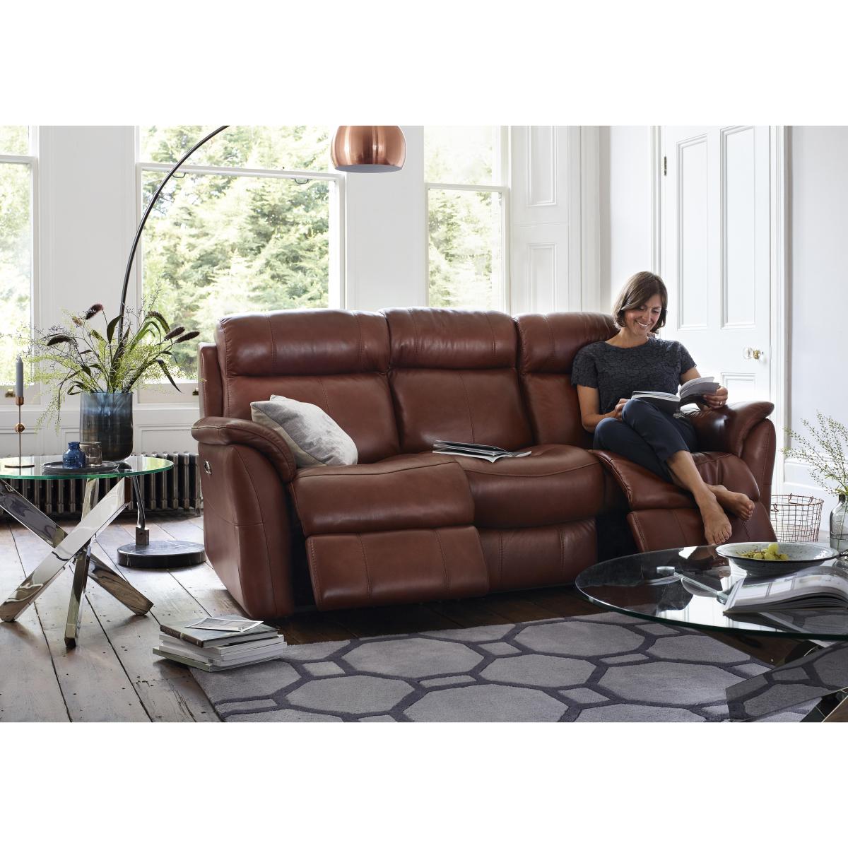 Take relaxation to the next level with the Relax Station Revive sofas and armchairs. Timelessly stylish, they have deep bucket seats, cushioned headrests and angled armrests. Choose from 5 grades of leather or soft touch fabric in a selection of beautiful colours. It’s easy to unwind thanks to the sprung seats and backs, supportive cushioning, built in lumbar support and the option of manual or power recliners. Comfort lovers, take a look at the Revive three seater leather sofa, you certainly won’t be disappointed. The deep bucket seats have luxury fibre back cushions and foam with fibre seat cushions, while inbuilt headrests, lumbar support and arm cushions cocoon you in your comfort zone. And if you want to really unwind, there are optional manual or power recliners (the power recliner even includes a USB port) – all for a fantastic value price. And this wonderful level of comfort is made to last. A strong frame, no-sag springs supporting the seats and higher density foam in the seat cushions makes sure of that. This large sofa’s beautiful leather upholstery is in a choice of grades with feature stitching. The Revive leather three seater sofa is made exclusively for Furniture Village, and is part of the contemporary Relax Station collection. Did you know. Natural leather has unique marks and characteristics with variance in colour and texture, and softens with use. Smoothing seat cushions prevents ‘puddling’.