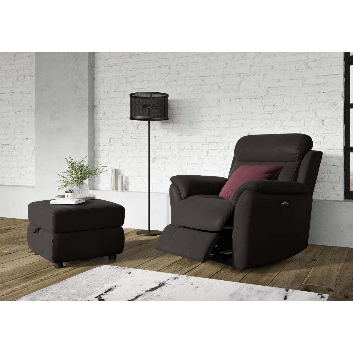 Take relaxation to the next level with the Relax Station Revive sofas and armchairs. Timelessly stylish, they have deep bucket seats, cushioned headrests and angled armrests. Choose from 5 grades of leather or soft touch fabric in a selection of beautiful colours. It’s easy to unwind thanks to the sprung seats and backs, supportive cushioning, built in lumbar support and the option of manual or power recliners. It’s next stop, relaxation with the Relax Station Revive leather armchair. Made for your comfort, it’s beautifully curving and deeply cushioned, with a bucket seat and a high back with a padded headrest and inbuilt lumbar support. The back cushion is luxury fibre while the seat cushion is foam with fibre, and for that extra touch of luxury there are generous arm cushions at the perfect angle. With the optional manual or power recliners you can put your feet up too, and with the power recliner you can recharge your devices with the useful USB port. This leather armchair is made to last, with a strong frame with no-sag springs and higher density foam in the seat cushion so it keeps its shape for longer. The Revive leather armchair is part of the contemporary Relax Station collection of sofas and chairs. Did you know. Natural leather has unique marks and characteristics with variance in colour and texture, and softens with use. Smoothing seat cushions prevents ‘puddling’.