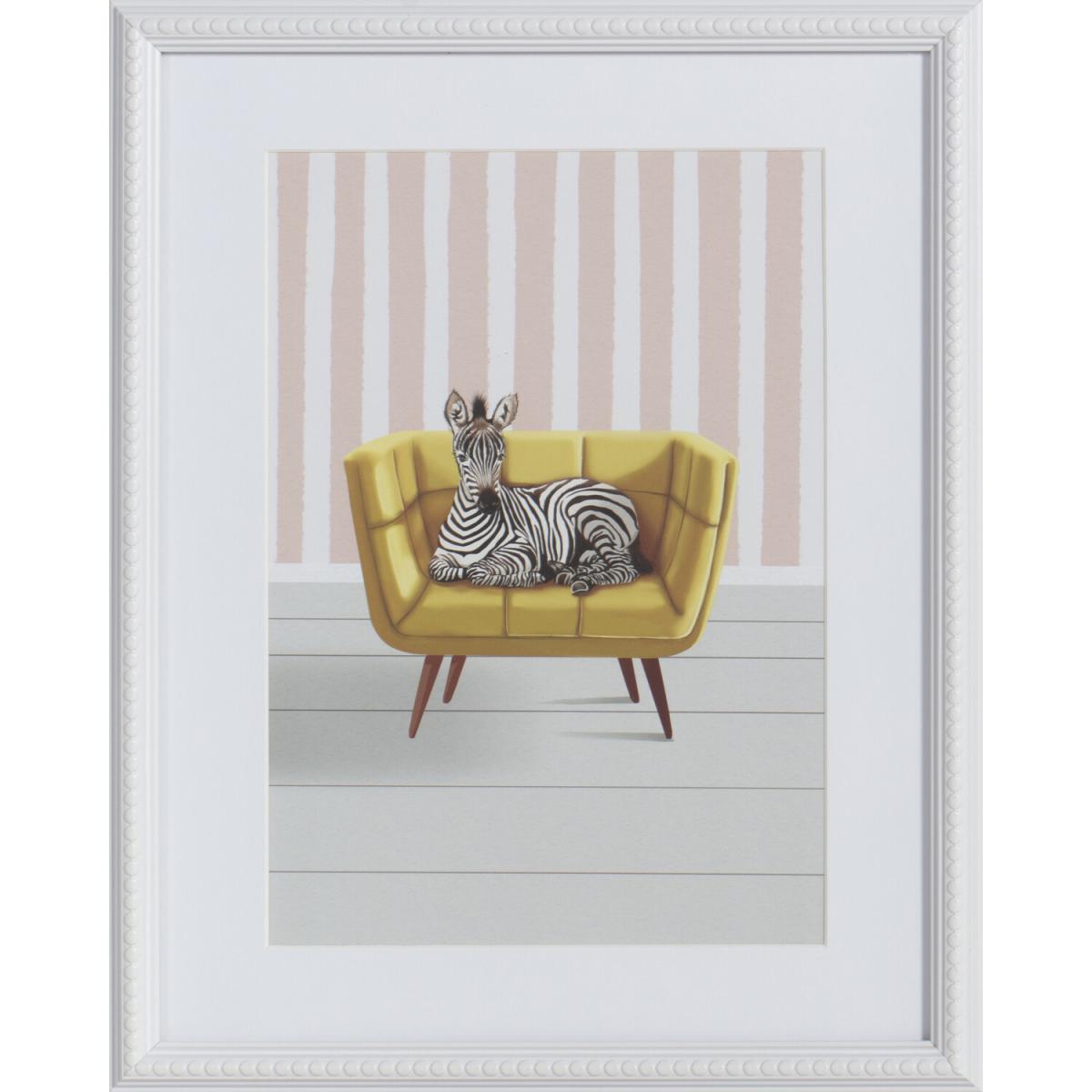 The Relaxing Baby Animal Framed Print is an adorable addition to your home. The art is available in three designs, featuring a tiger, giraffe, or zebra relaxing on a comfortable chair. The print comes pre-framed for a sleek finish and will add a pop of colour to any room. It's quick and easy to hang with the fittings included and will look wonderful on the wall of your living room, hallway, or bedroom.