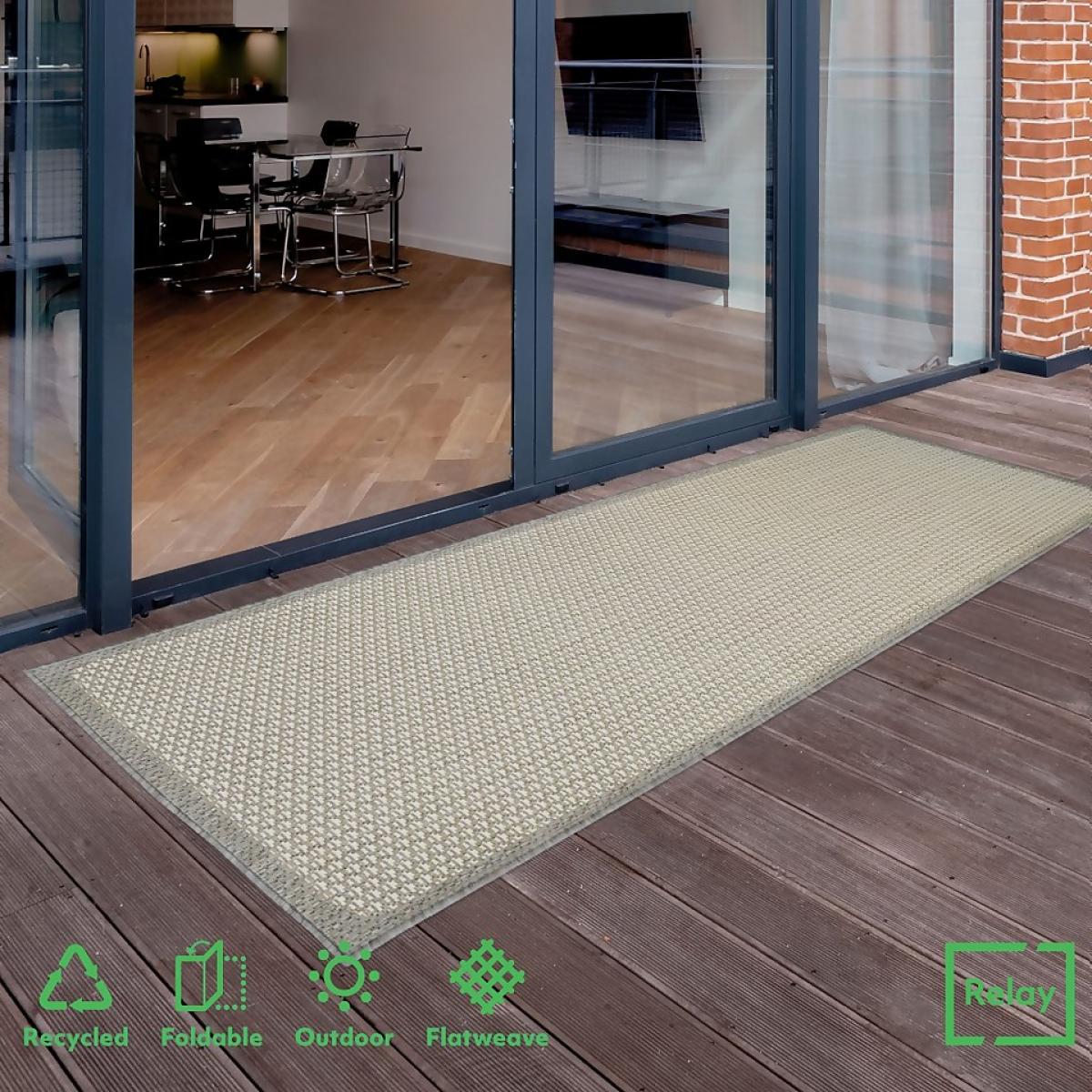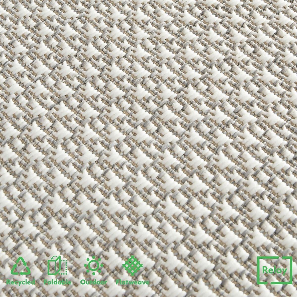 Produced with a 100% recycled polyester pile in subtle neutral shades, these flatwoven rug are suitable for creating a cosy space both indoor and outdoor. Foldable for easy storage.