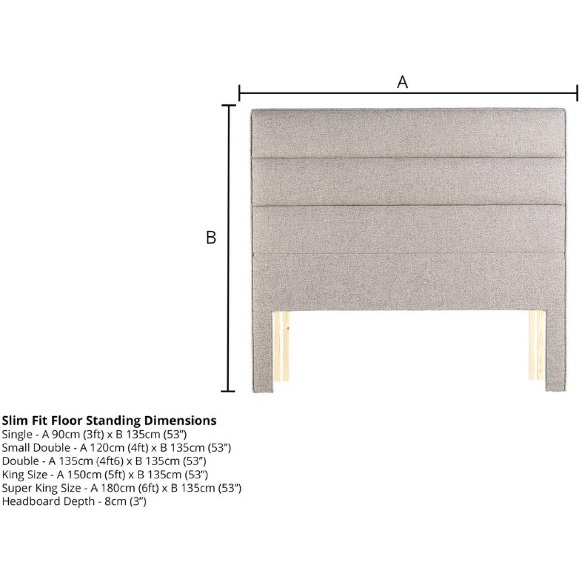 Create the perfect backdrop to your lazy Sundays in bed with the Relyon Burford Full Height Floor Standing Headboard. With a horizontal linear design, this minimalistic piece will effortlessly complete the look of your new Relyon divan bed. The Burford is available in your choice of beautiful fabrics to match perfectly with Relyon divan bases and compliment your bedroom décor. Features: Slim Fit Floor Standing - The Slim fit design extends from the height of the headboard to the floor and aligns with the width of your mattress and divan. Holders of the Manufacturing Guild Mark showing their dedication to quality, craftmanship, and durability Simple yet stylish horizontal padding FSC certified timber - the mark of responsible forestry Available in a wide range of Relyon fabrics and colours Free 10 year guarantee for total peace of mind Dimensions: Single - W 90cm (3ft) x H 135cm (53’’) x D 8cm (3’’) Small Double - W 120cm (4ft) x H 135cm (53’’) x D 8cm (3’’) Double - W 135cm (4ft6) x H 135cm (53'’) x D 8cm (3’’) King Size - W 150cm (5ft) x H 135cm (53’’) x D 8cm (3’’) Super King Size - W 180cm (6ft) x H 135cm (53’’) x D 8cm (3’’) All screens vary in colour reproduction and whilst every effort has been made to display the colour as accurately as possible it is for guidance only.