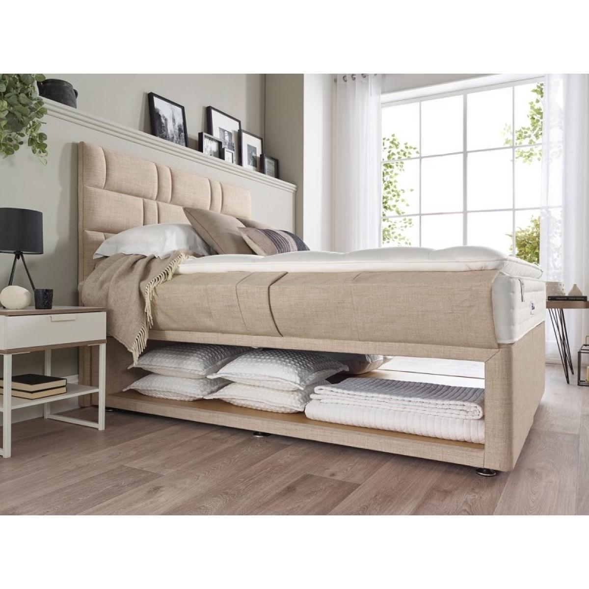 Please note, the headboard pictured is not included but is available to purchase separately. You can browse our range of Relyon headboardshere. The base or frame pictured in the image may not be representative of the specific base you require. Please contact us for more information, if needed.. This handcrafted pocketed mattress offers enhanced resilience and support a rejuvenating night39;s sleep. The pocket springs adapt perfectly to the shape of your body, while its refined blend of natural fillings; wool and pashmina provide luxurious comfort and softness. 2400* Pocket Springs - Pocket springs move independently and so provide the best postural support. The individual pocket springs follow and support your body shape and weight. *King size. Firm Edge Support - Firmer springs along the sides add strength to the edge of the mattress to allow you to use the whole surface of the mattress as a sleeping area. Available in one tension only. Deep Soft Layers - A dust free filling providing softness and resilience. Wool and Pashmina Layer - Wool and pashmina are blended into a comfortable and durable insulation layer. No Turn - No need to turn the mattress, although regular rotation will extend its life. 3 Rows of Side Stitching - Provides a more robust mattress border than a standard mattress. Traditionally Hand Tufted with Wool Tuffs - This traditional skill ensures all loose fillings are secured to provide the perfect finish to your mattress. 8 Year Guarantee - For your peace of mind, Relyon offer a 8 year guarantee on all mattresses purchased with a divan base. Mattress Dimensions:. * Single 90 x 190cm Spring Count 1358. *Small Double 120 x 190cm Spring Count 1793 *Double 135 x 190cm Spring Count 2036 * King 150 x 200cm Spring Count 2400 *Super King 180 x 200cm Spring Count 2877. *Divan Base Height: 41.5cm Firm Edge Sprung Divan Base -The open coil spring unit sits inside a wooden sided frame. The spring unit soften the comfort of a mattress and the firm edges help prevent 39;roll off39; on the side of the bed.. Open Coil Springs -This spring unit is strong, durable and offers superb resilience and support for your mattress. Firm Edge -The open coil spring unit sits within a surrounding timber frame help to prevent 39;roll off39; when you are on the edge of the bed. Timber Frame -High quality timber frame. Sturdy Construction -All key joints are fully glued and screwed providing exceptional strength and rigidity. Silver Castors -Castors are secured onto a hardwood corner block for maximum strength. Divan Feel -The firm edge sprung divan provides a medium feel. All screens vary in colour reproduction and whilst every effort has been made to display the colour as accurately as possible it is for guidance only..
