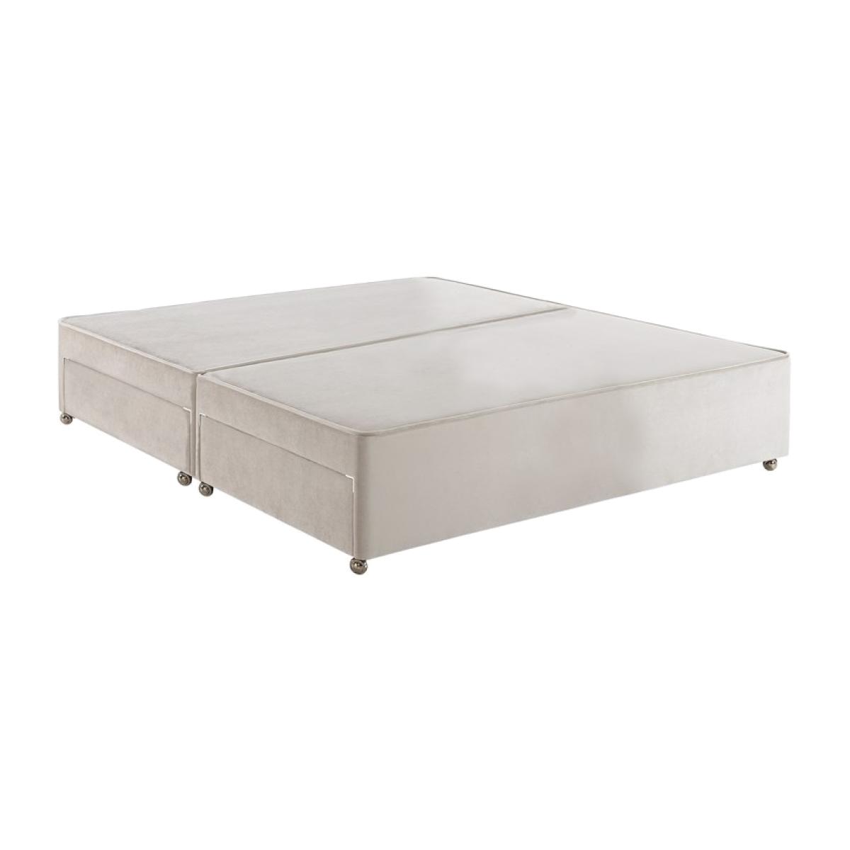 The Relyon Luxury Divan Base combines exceptional comfort with sleek, modern design to offer the ultimate foundation for your mattress. Crafted with precision and attention to detail, this divan base enhances your sleep experience with its premium construction and stylish finish. Features: Padded Platform Top:The base features a solid wooden top upholstered in fabric, providing a supportive feel to your mattress. This ensures a stable foundation, promoting better comfort and durability. If you opt for a divan with drawers, please ensure your room has enough space for easy access. Firm Edge Sprung Base: Equipped with springs at the top, this base offers enhanced support that works seamlessly with your mattress, creating a perfect sleep surface. A sprung base can also help extend the lifespan of your mattress. For the ultimate luxury, pairing this base with a sprung mattress is highly recommended. Silver Castors: The castors are secured onto a sturdy hardwood corner block for maximum strength, allowing easy movement and positioning of the bed. Divan Drawer Options: The divan features high-quality drawers made from durable laminate, designed with smooth runners for effortless operation. Each drawer has a weight limit of 15kg, providing convenient storage space for bedding and personal items. Free 10 year guarantee for total peace of mind. Available in a wide variety of fabrics and colors, this divan bed base is not only practical but also stylish, allowing you to customize it to suit your bedroom décor. Dimensions: Single – W 90cm (3ft) x L 190cm (6ft3) x D 41.5cm (16.3'') Small Double – W 120cm (4ft) x L 190cm (6ft3) x D 41.5cm (16.3'') Double – W 135cm (4ft6) x L 190cm (6ft3) x D 41.5cm (16.3'') King Size – W 150cm (5ft) x L 200cm (6ft6) x D 41.5cm (16.3'') Super King Size – W 180cm (6ft) x L 200cm (6ft6) x D 41.5cm (16.3'') Firm Edge Sprung Base Depth including castors - x D 41.5cm (16.3'') Important: For single divans, please specify the side (Left or Right) of the bed where you want the 2 drawers to be placed, as viewed from the foot of the bed towards the head end All screens vary in colour reproduction and whilst every effort has been made to display the colour as accurately as possible it is for guidance only.
