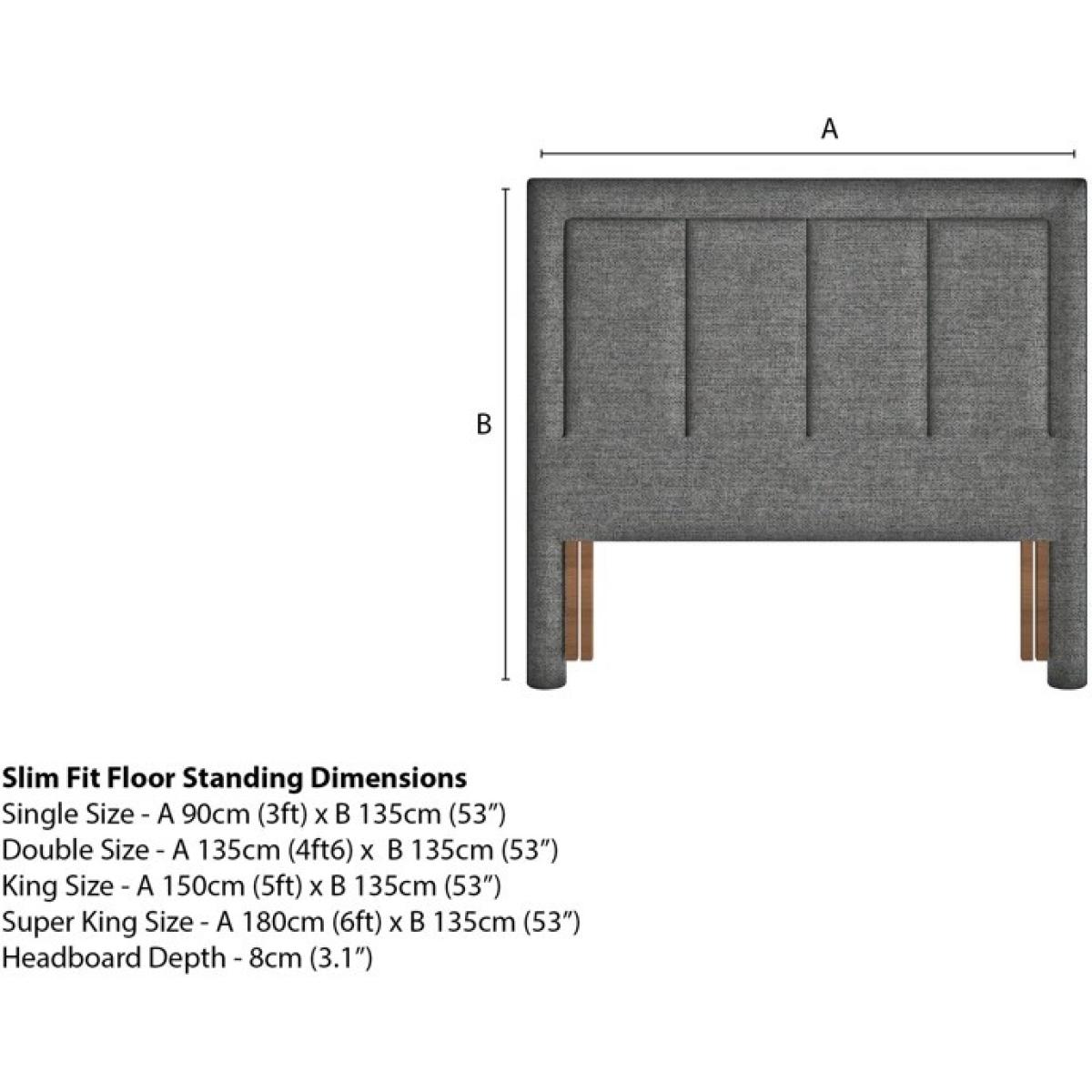 The Relyon Oxford Full Height Floor Standing Headboard showcases a refined vertical panel design, exuding a timeless elegance. Crafted with meticulous attention, its sturdy floor-standing structure complements its classic aesthetic, adding sophistication to any bedroom. The vertical panel layout creates a sense of depth, offering a tasteful backdrop for your sleeping space with a touch of traditional charm. Features: Slim Fit Floor Standing - The Slim fit design extends from the height of the headboard to the floor and aligns with the width of your mattress and divan. Holders of the Manufacturing Guild Mark showing their dedication to quality, craftmanship, and durability Classic and timeless vertical panel design FSC certified timber - the mark of responsible forestry Available in a wide range of Relyon fabrics and colours Free 10 year guarantee for total peace of mind Dimensions: Single Size - W 90cm (3ft) x H 135cm (53") x D 8cm (3.1") Small Single Size - W 120cm (4ft) x H 135cm (53") x D 8cm (3.1") Double Size - W 135cm (4ft6) x H 135cm (53’’) x D 8cm (3.1") King Size - W 150cm (5ft) x H 135cm (53’’) x D 8cm (3.1") Super King Size - W 180cm (6ft) x H 135cm (53’’) x D 8cm (3.1") All screens vary in colour reproduction and whilst every effort has been made to display the colour as accurately as possible it is for guidance only.