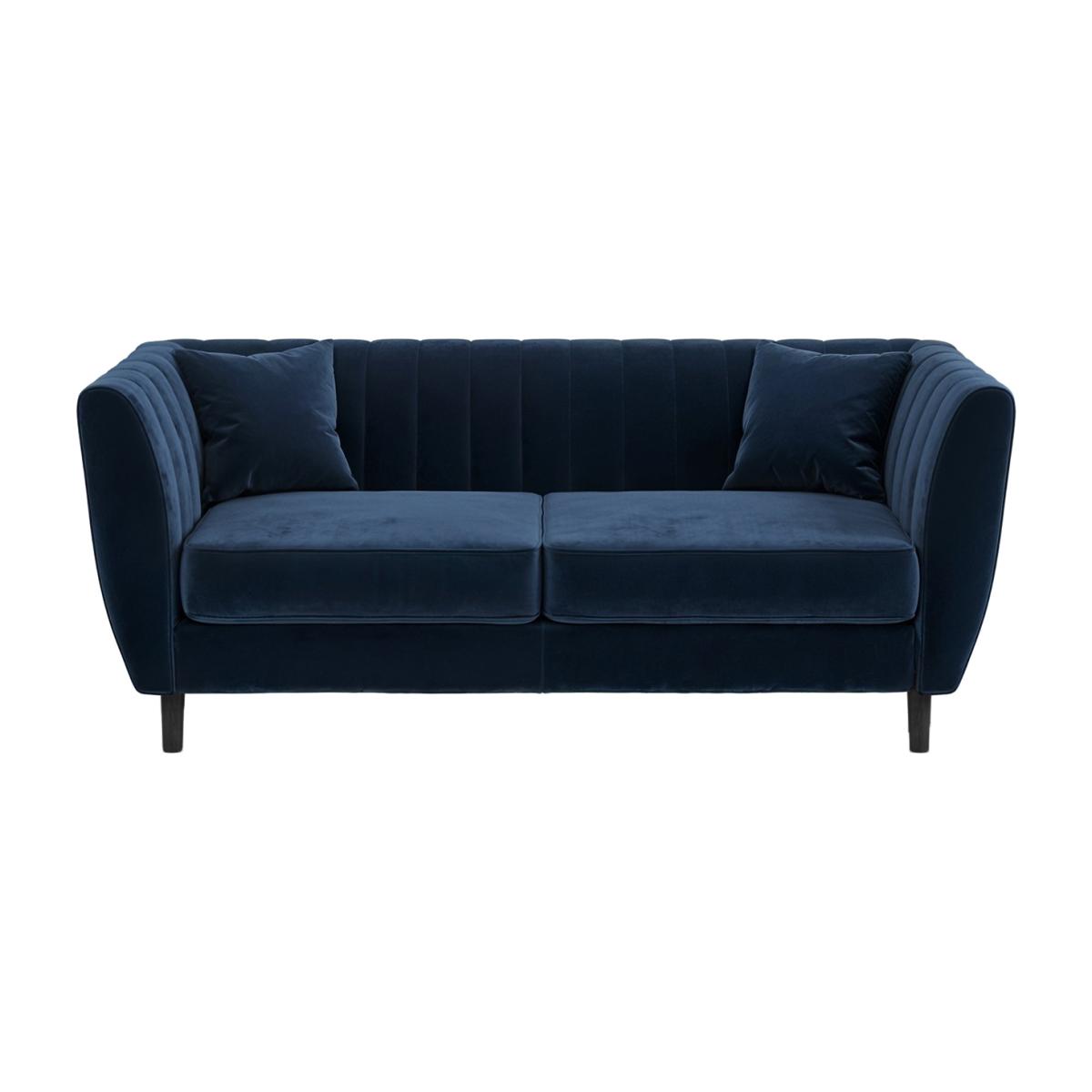 The Solace Co Remi 2 Seater Mid Century Navy Velvet Sofa combines modern design with a touch of retro charm, making it the perfect statement piece for your living room. Upholstered in a luxurious navy velvet, this sofa exudes elegance while providing exceptional comfort and style. The sofa features a lined cushioned design with a fixed backrest and reversible seat cushions, allowing you to easily maintain its fresh look over time. The cushions are foam-filled for added comfort, ensuring a cosy seating experience. It also comes with complementary scatter cushions that complete the look, adding an extra layer of softness and sophistication. Assembly is quick and simplejust attach the feet, and your Remi Sofa is ready to elevate your space. With its sleek silhouette, soft upholstery, and stylish details, this 2-seater sofa is an ideal choice for both modern and mid-century-inspired interiors.
