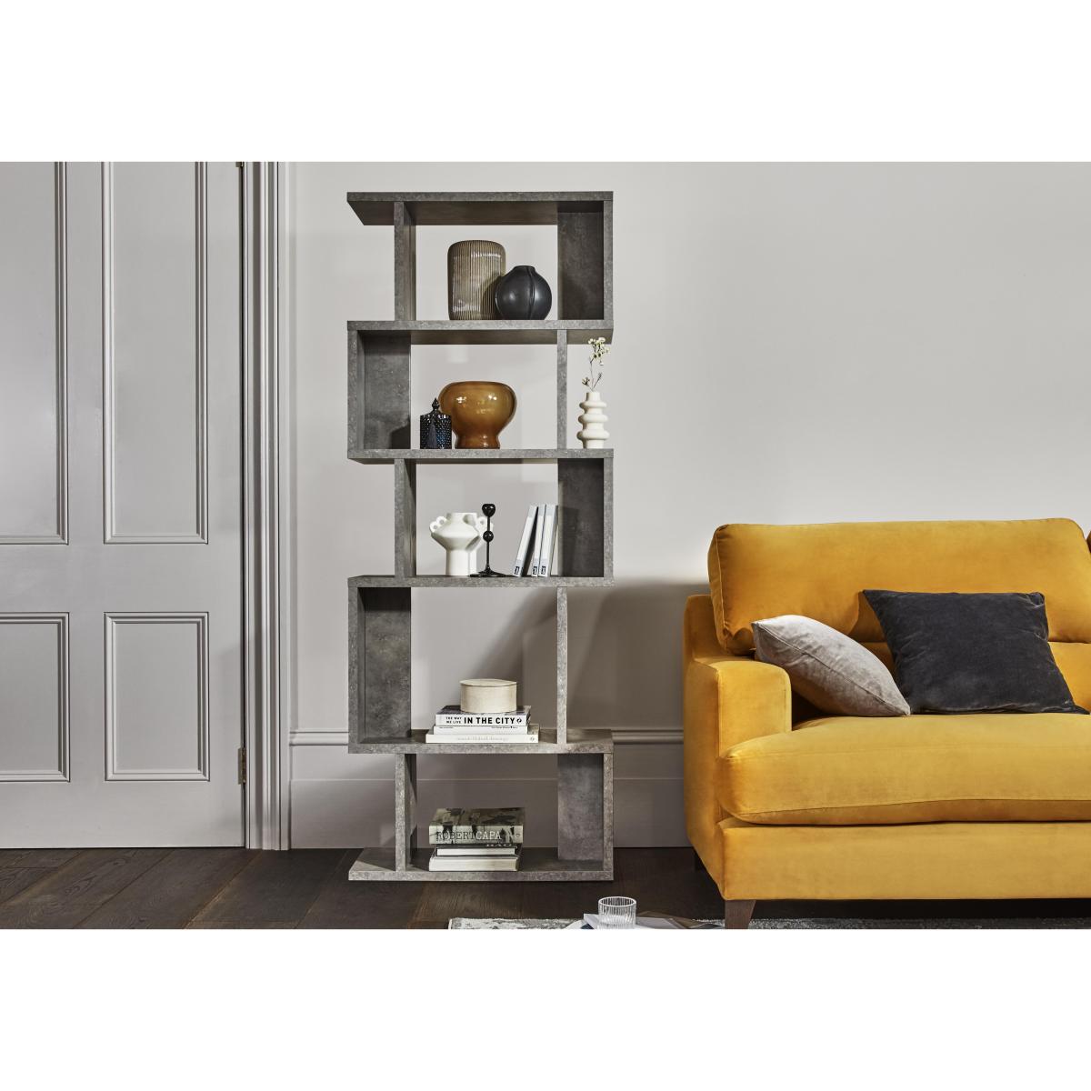 Eye-catching, ergonomic and exceptionally functional, the shelving units and living room tables in the Remi range are the perfect choice for modern living spaces. Showcasing a striking design concept – a minimalist arrangement of horizontal and vertical surfaces that effortlessly create shelves and alcoves for storage and display – pieces are space-efficient and very stylish. Choose from three on-trend finishes – oak, carrara and concrete – and mix and match sizes and styles to bring practical contemporary storage to your living room, hallway and dining room. The Remi range is only available at Furniture Village. Designed to fit neatly in narrow spaces and awkward corners, this alcove shelving unit has a striking urban-look concrete-effect finish. Why you'll love it. Striking and practical narrow alcove shelving unit. Contemporary minimal style. Bold concrete-effect finish for urban-cool interiors. Asymmetric placement of vertical dividers creates nooks and alcoves. Delivered to you fully assembled. Only at Furniture Village. This concrete-effect alcove shelving is part of the Remi range. What you need to know. Finish may show colour variation between pieces. Avoid placing in direct sunlight or close to a source of heat. Wipe clean with a damp cloth. Dry with a soft duster. Do not use abrasive cleaners. Always use coasters and placemats. The Remi alcove shelving is also available in oak and carrara finishes. WARNING!. Furniture can tip over unexpectedly and cause injury. This item must be fixed to a wall using the anti-tip kit provided. Be sure to use the correct wall fixings suitable for the walls in your home. Furniture Village is not able to fix anti-tip devices for you. Seek professional advice if you are unsure.