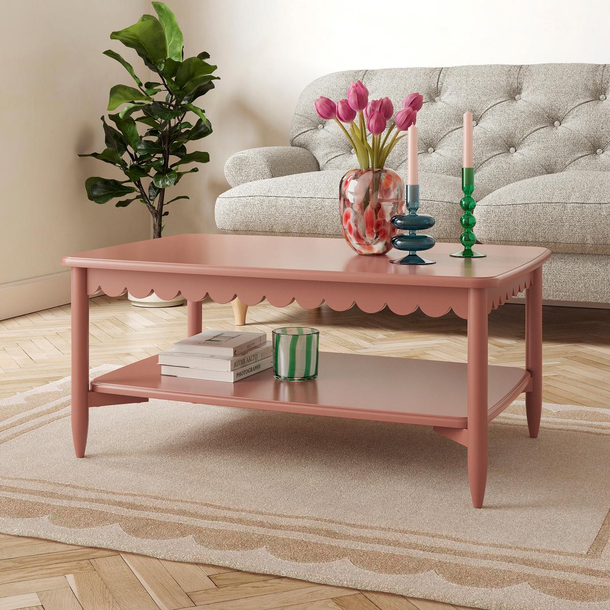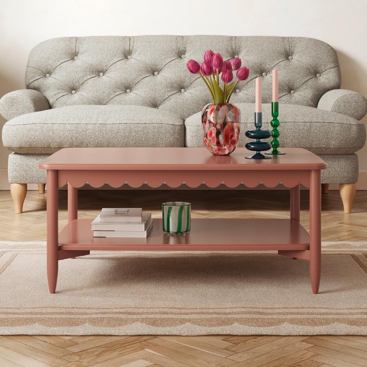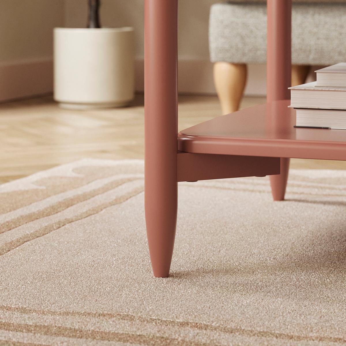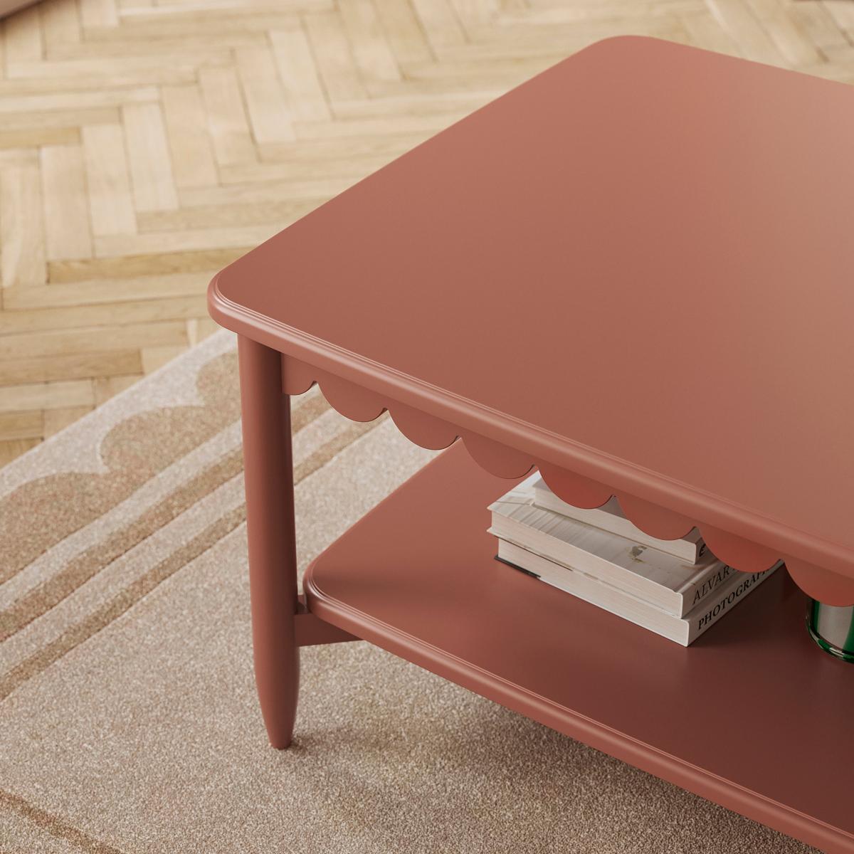 The Remi coffee table in clay offers a wonderful mix of colour and form, making it a versatile piece that can brighten up a neutral or pastel-toned living space. I love how its rich, earthy red hue injects warmth and character, especially in contemporary or eclectic interiors. When styling, consider layering with textured accessories like woven trays or ceramic vessels to add depth. It works well paired with a variety of seating options - from modern velvet sofas to vintage armchairs - and is eminently practical, providing space for books or decorative objects. Keep the surface uncluttered for a clean, polished look, and use its lower shelf for organising magazines or baskets for added organisation.