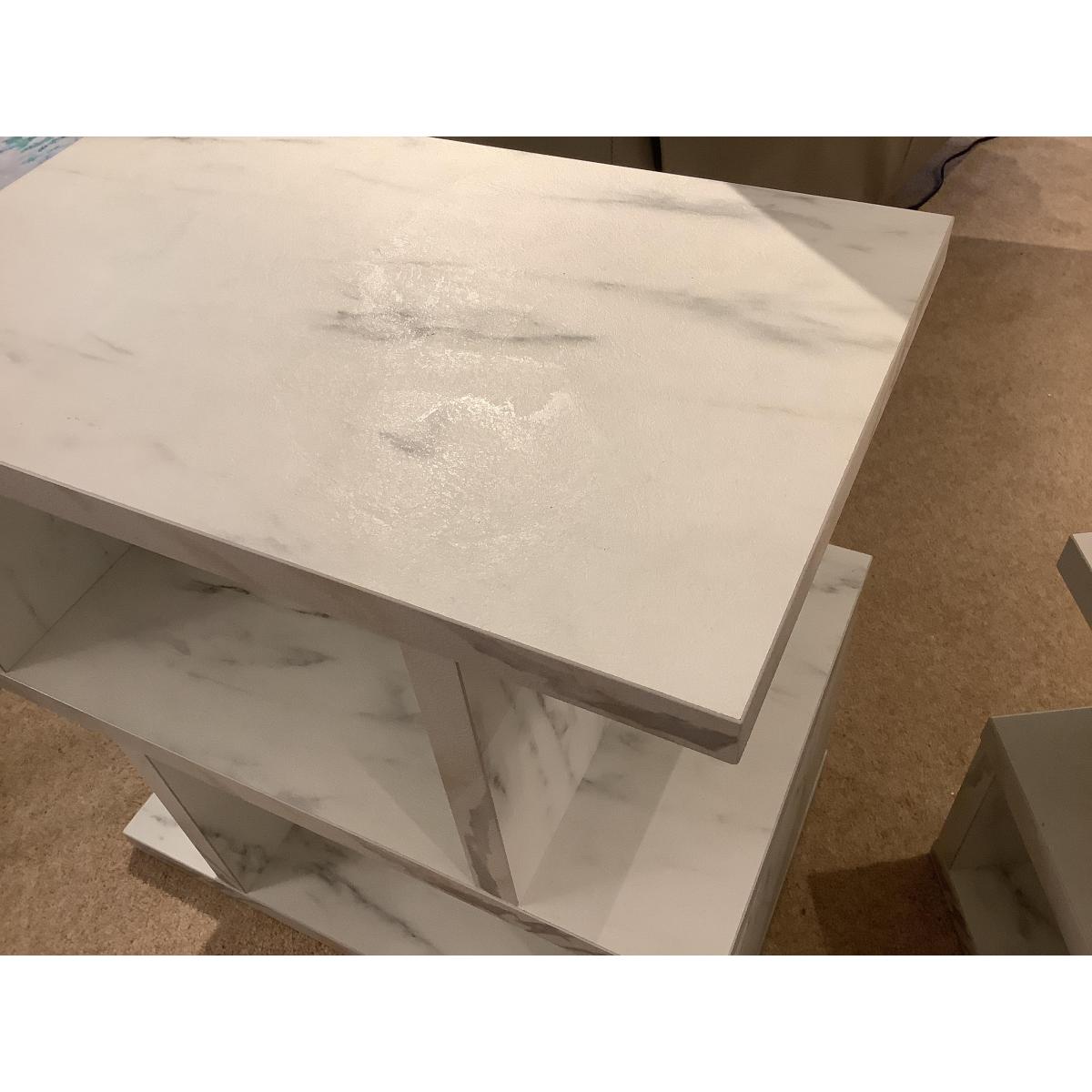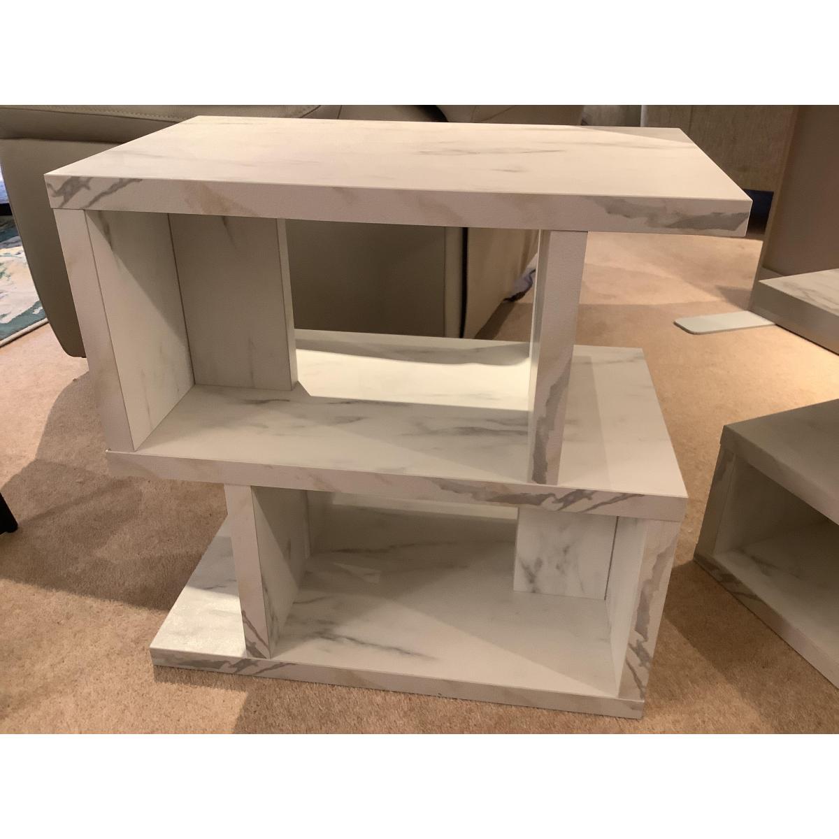 I love this little side table for its clean, modern look and versatility. It works particularly well in contemporary or minimalist interiors, but can also add a fresh touch to more classic spaces. The marble finish adds a touch of luxury, making it ideal for styling next to a sofa, armchair, or even as a bedside table. Practical tips include pairing it with lush textiles or greenery to soften the look, and using its open shelf for storing magazines or decorative pieces to keep surfaces clutter-free. Its sleek design makes it quite adaptable, so it’s a good choice when you want a piece that looks stylish yet functional.