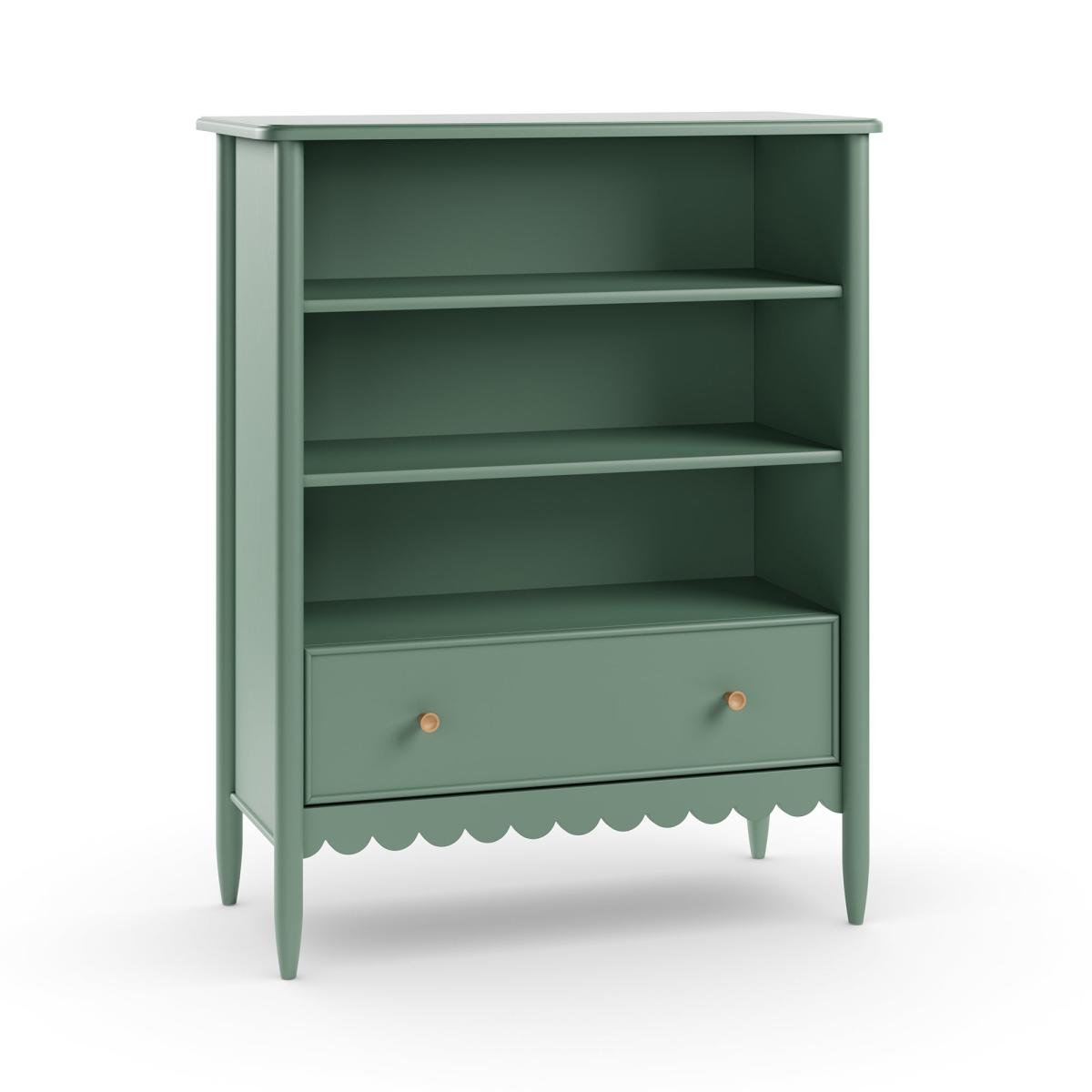 Dunelm Exclusive - Designed and Developed by Dunelm* Scallop detail* Fresh painted finish* Large drawer* Matching furniture available This bookcase features three open shelves and a spacious lower drawer, offering ample room to display books, ornaments, and other treasured items. The scallop detailing adds a touch of delicate craftsmanship, while the painted finish provides a contemporary edge.