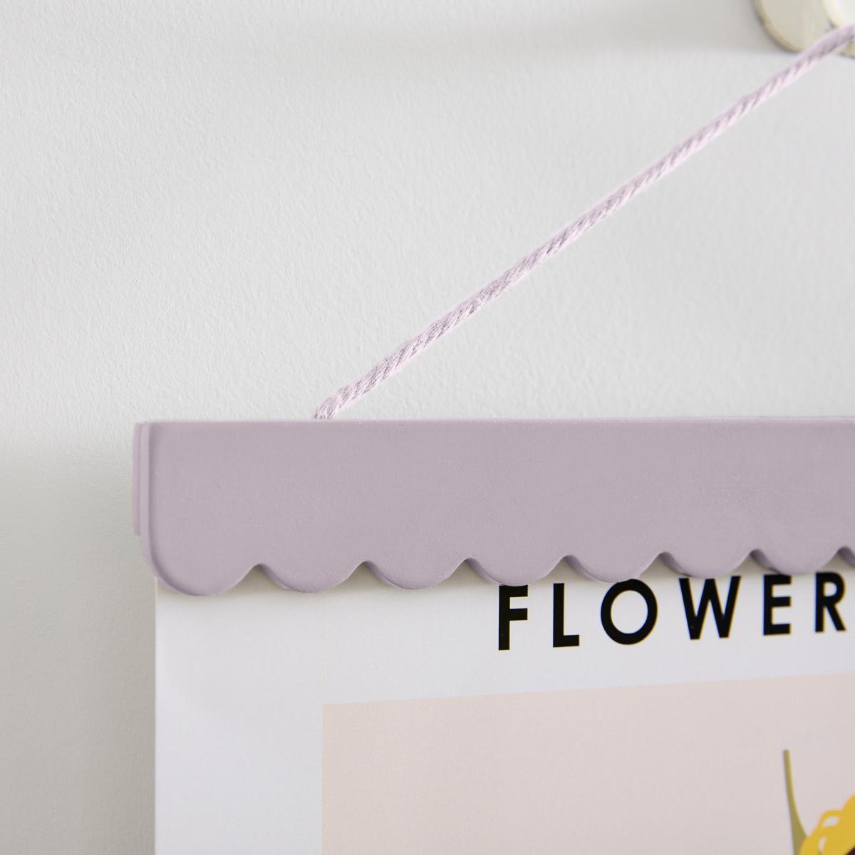 * Great way to display posters* Wooden scalloped design* Part of the Remi range* Choice of colours Display posters in style with the Remi Poster Hanger. Just clip in your artwork and hang on the wall. The scalloped design is available in a choice of colours and is a great way to display awkward sized artwork or bring added colour to your walls. Please note: the poster pictured is not included.