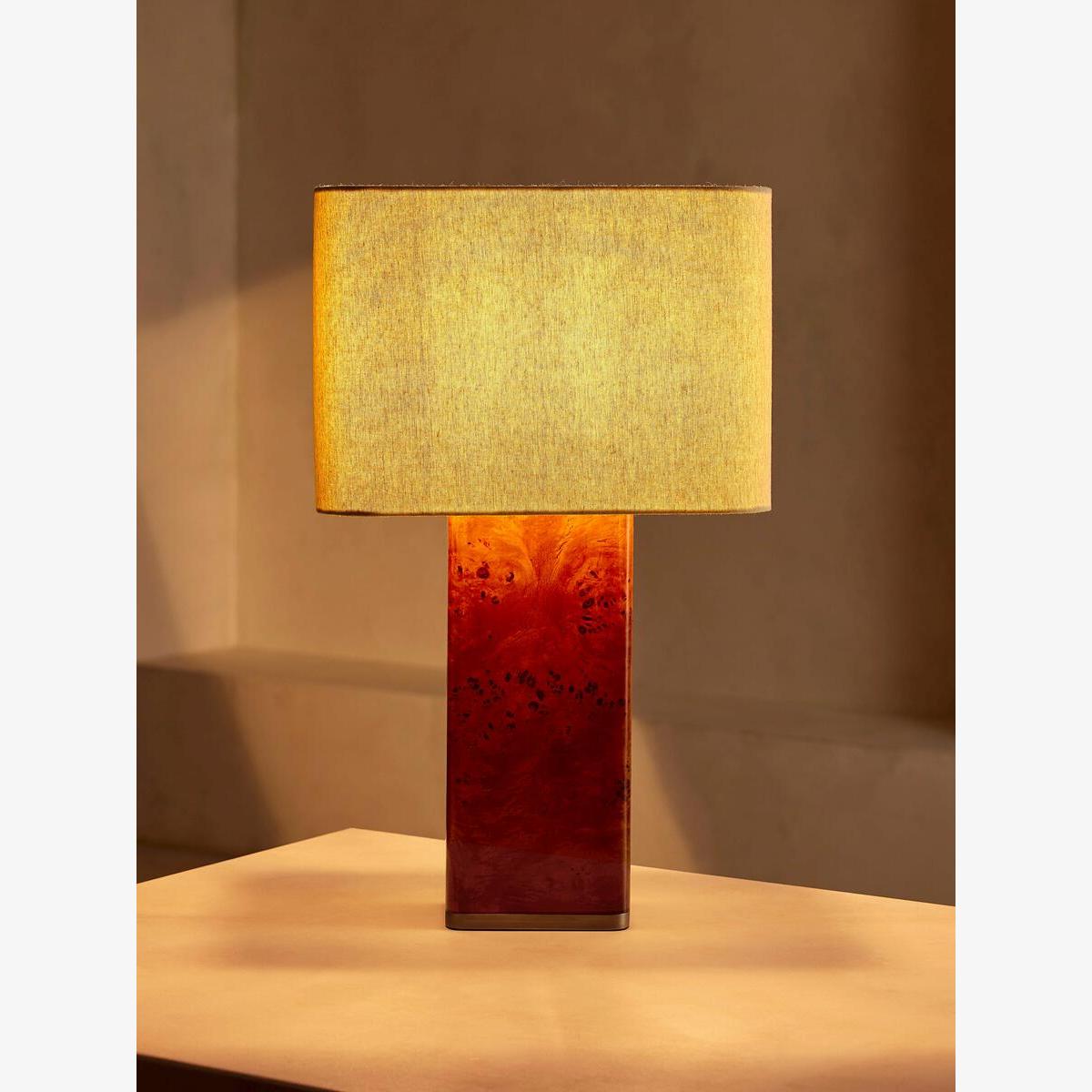 Remi Rectangle Table Lamp, Mappa Burl