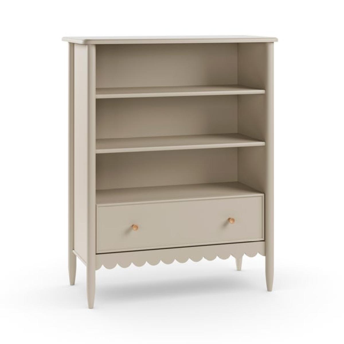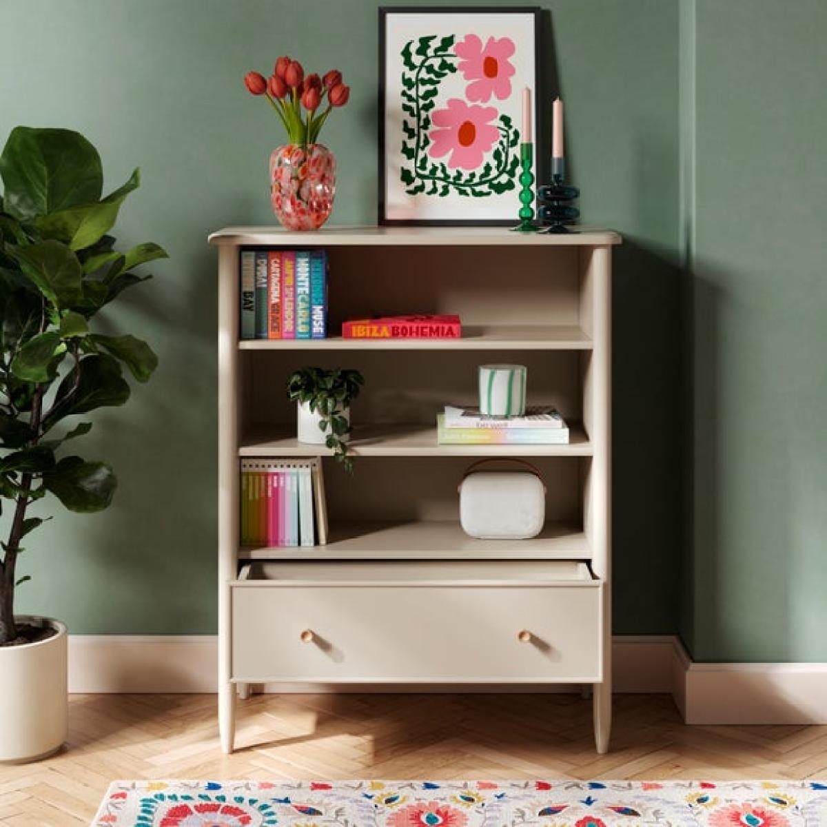 Dunelm Exclusive - Designed and Developed by Dunelm * Scallop detail * Fresh painted finish * Large drawer * Matching furniture available This bookcase features three open shelves and a spacious lower drawer, offering ample room to display books, ornaments, and other treasured items. The scallop detailing adds a touch of delicate craftsmanship, while the painted finish provides a contemporary edge.