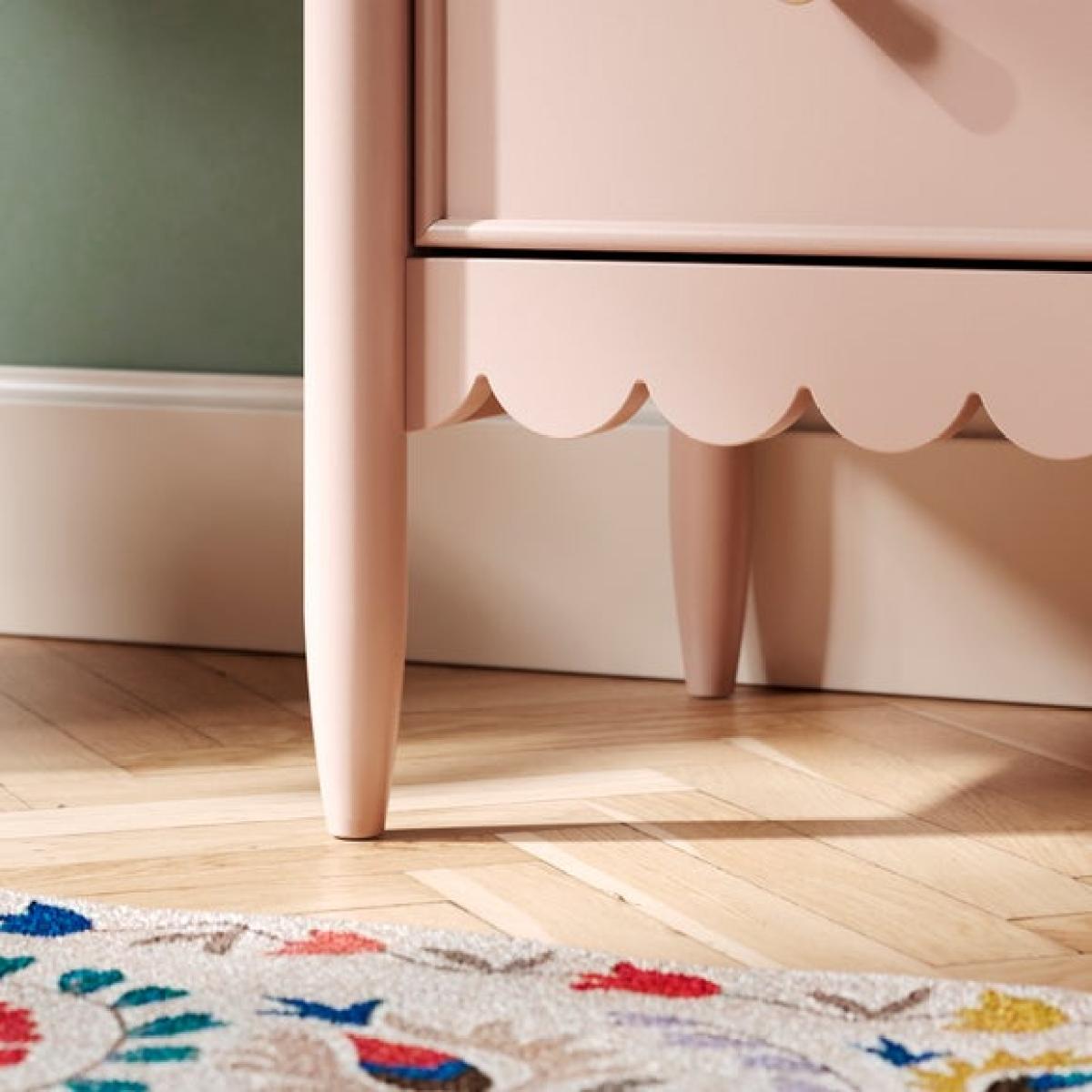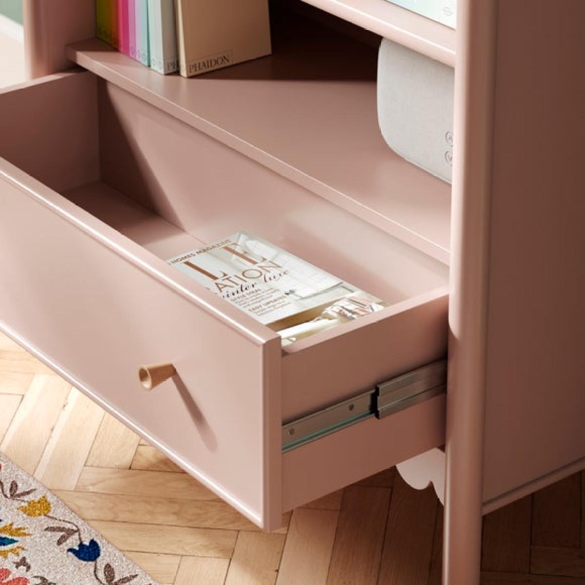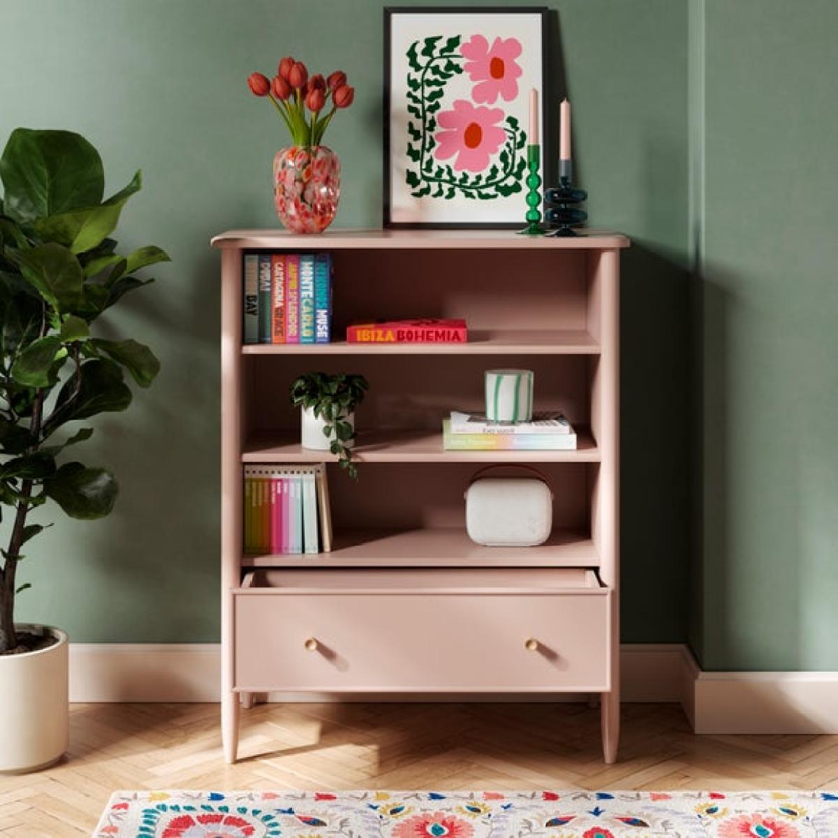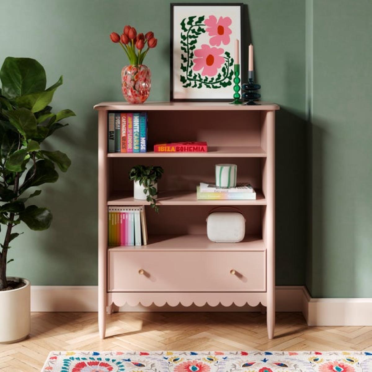 I love this little bookcase for its soft, scalloped edge detail, which adds a charming touch without feeling overly fussy. It works particularly well in cosy, pastel or Scandinavian-inspired interiors where its gentle colour and delicate design bring warmth and subtle playfulness. Practical styling tips include using it for children's books and toys, but it also works as an accent piece in living rooms or bedrooms for showcasing decorative objects or plants. Layering curated books with small vases or personal keepsakes on the shelves can help make it feel more personalised and inviting. Its compact size makes it versatile for smaller spaces, while the scalloped trim adds a bespoke feel that elevates even simple setups.