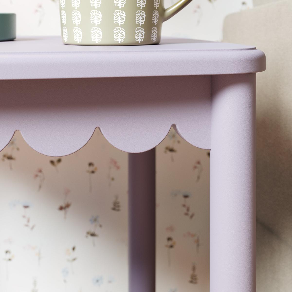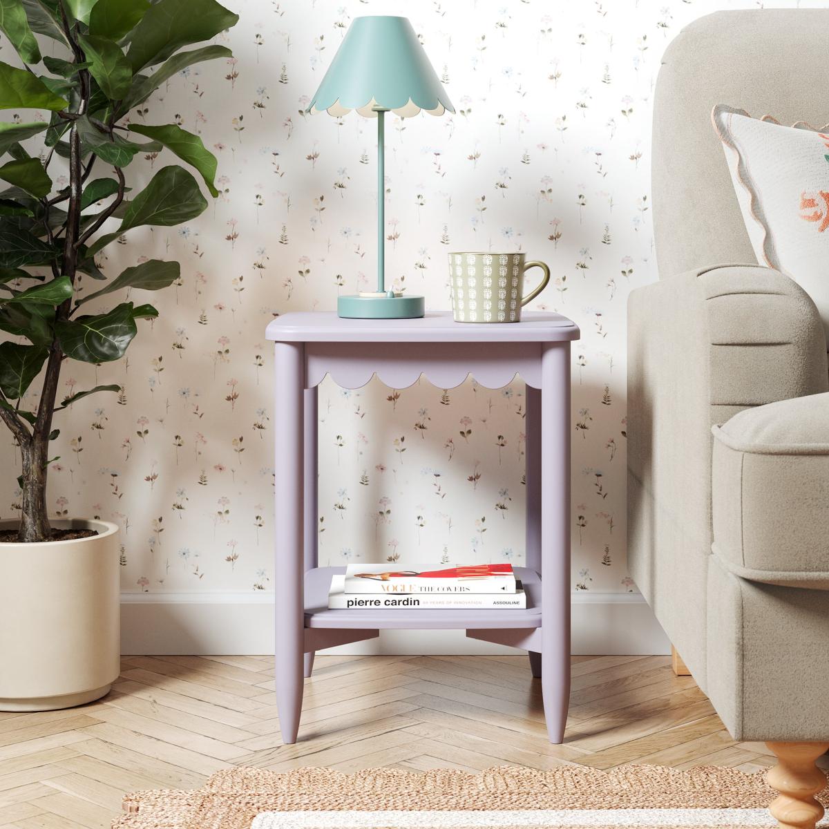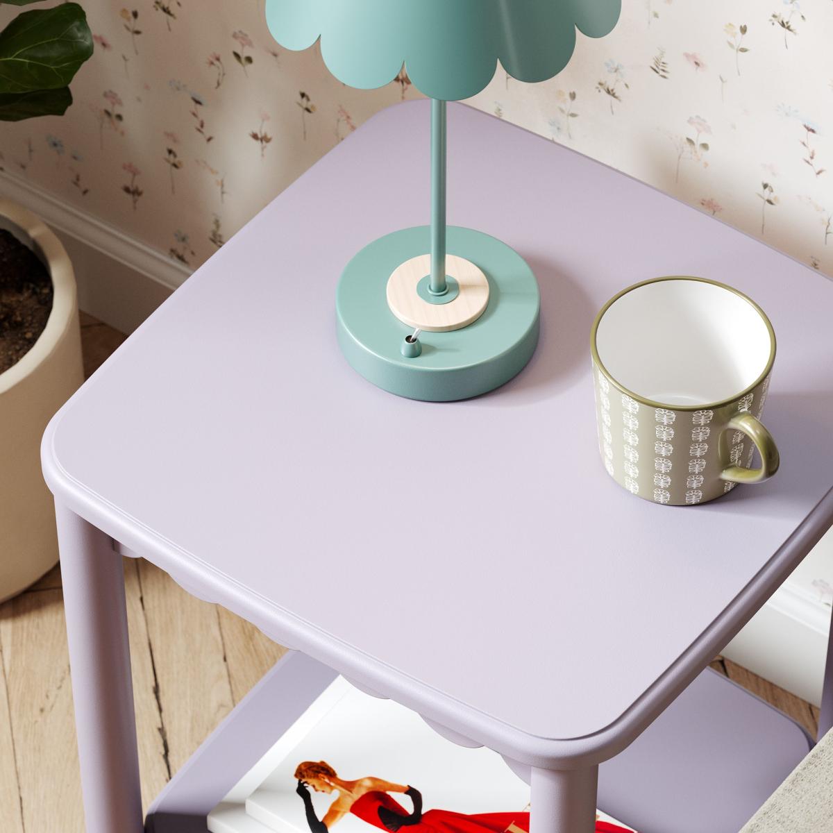 I really like this lilac side table for its playful yet understated design. It works particularly well in nurseries or kids’ rooms, adding a gentle splash of colour without overwhelming the space. Its compact size makes it practical for placing beside a bed or armchair, providing a handy surface for a lamp, books, or a mug. To style it effectively, consider pairing it with neutral or pastel tones in the room to let the colour stand out, and keep accessories minimal to maintain a clean, cohesive look. Overall, it’s a versatile piece that combines function with a touch of colour, making it a great addition to a variety of interior schemes.