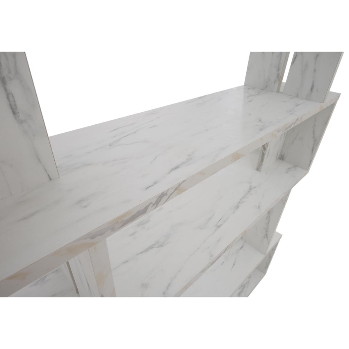 Eye-catching, ergonomic and exceptionally functional, the shelving units and living room tables in the Remi range are the perfect choice for modern living spaces. Showcasing a striking design concept – a minimalist arrangement of horizontal and vertical surfaces that effortlessly create shelves and alcoves for storage and display – pieces are space-efficient and very stylish. Choose from three on-trend finishes – oak, carrara and concrete – and mix and match sizes and styles to bring practical contemporary storage to your living room, hallway and dining room. The Remi range is only available at Furniture Village. Here’s a large shelving unit that’s every bit as stylish as the items it displays, thanks to a creative arrangement of shelves and alcoves and stunning carrara-effect finish. Why you'll love it. With its luxe finish and spacious storage, this wide shelving unit tops our wish list. Contemporary minimal style. In a beautiful and striking carrara-effect finish. Asymmetric placement of vertical dividers creates nooks and alcoves. Delivered to you fully assembled. Only at Furniture Village. This carrara-effect wide shelving is part of the Remi range. What you need to know. Finish may show colour variation between pieces. Avoid placing in direct sunlight or close to a source of heat. Wipe clean with a damp cloth. Dry with a soft duster. Do not use abrasive cleaners. Always use coasters and placemats. The Remi wide shelving is also available in oak and concrete finishes. WARNING!. Furniture can tip over unexpectedly and cause injury. This item must be fixed to a wall using the anti-tip kit provided. Be sure to use the correct wall fixings suitable for the walls in your home. Furniture Village is not able to fix anti-tip devices for you. Seek professional advice if you are unsure.