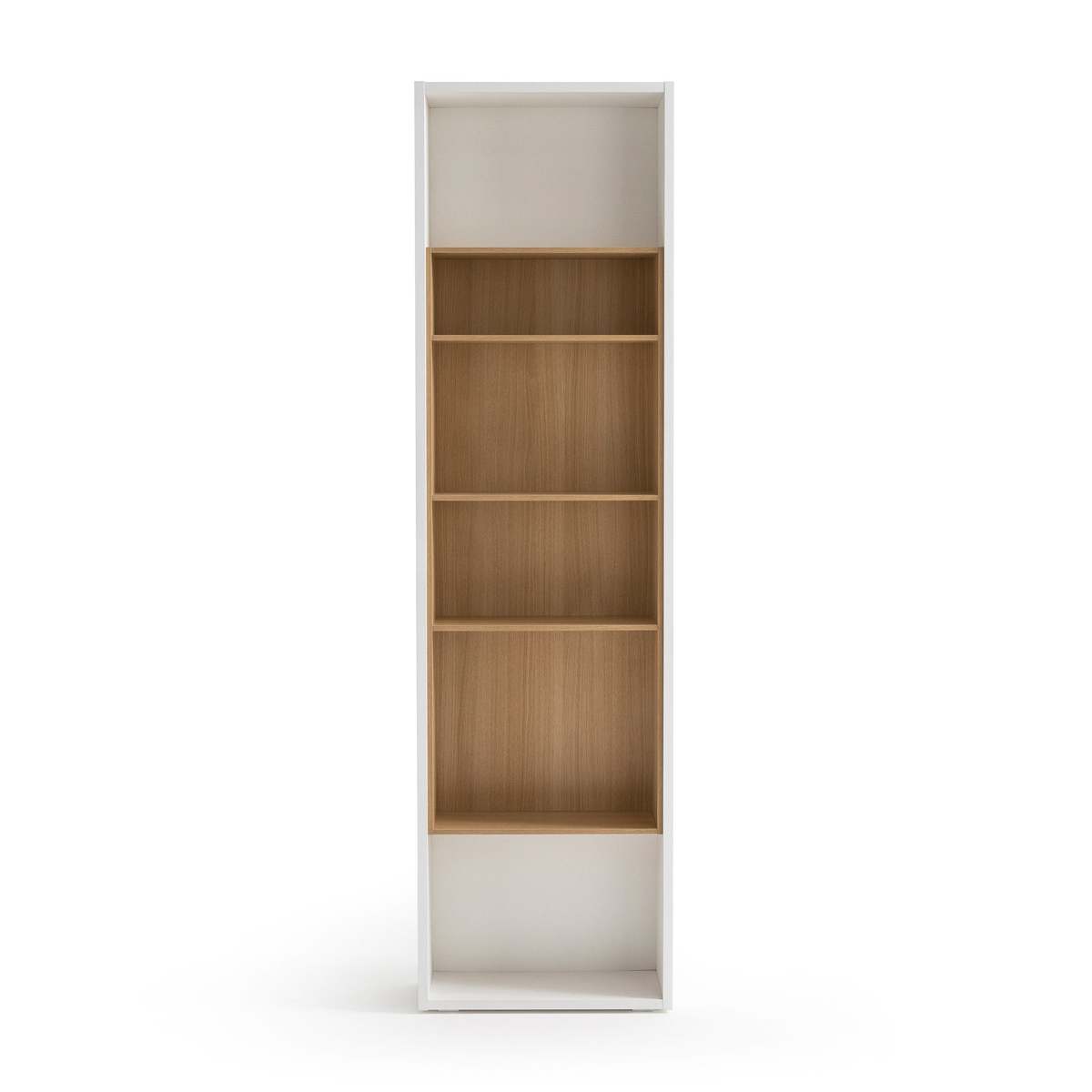 I love this bookcase for its clean, minimalist lines that make it incredibly versatile, especially in Scandi or modern interiors. Its slim profile is perfect for smaller spaces or as a statement piece against a neutral wall. The natural wood shelves paired with the white frame add warmth and simplicity-ideal for layered styling with a mix of books, plants, and decorative objects. Practical tips include keeping the top and bottom shelves clear for a streamlined look, while adding colour and texture through curated accessories on the middle shelves. This piece works well in living rooms, home offices, or bedrooms where a minimalist aesthetic is desired.