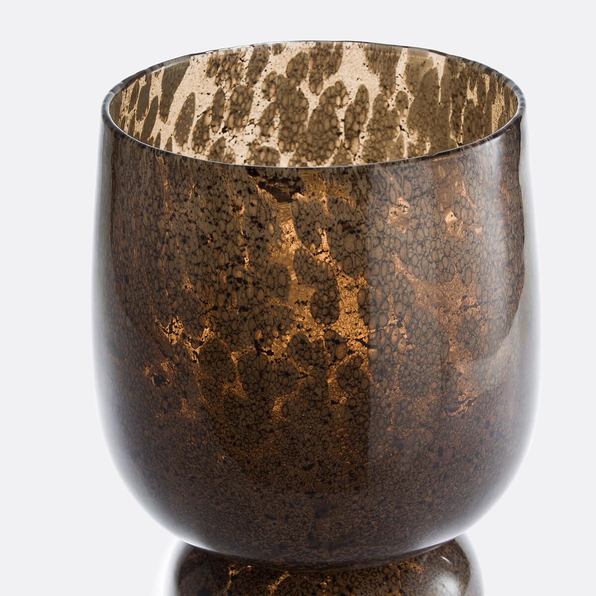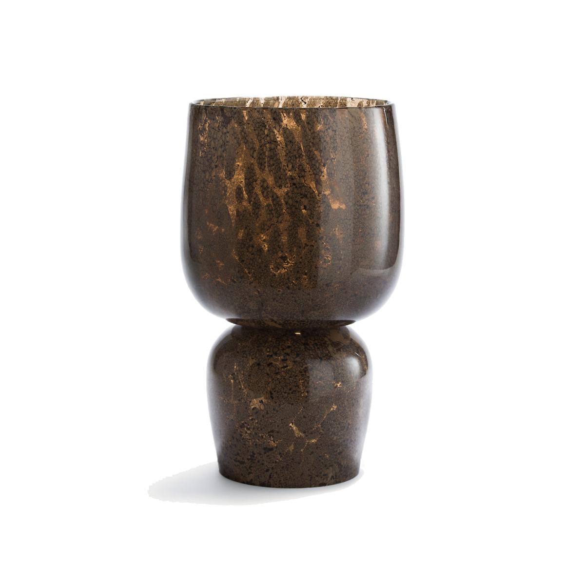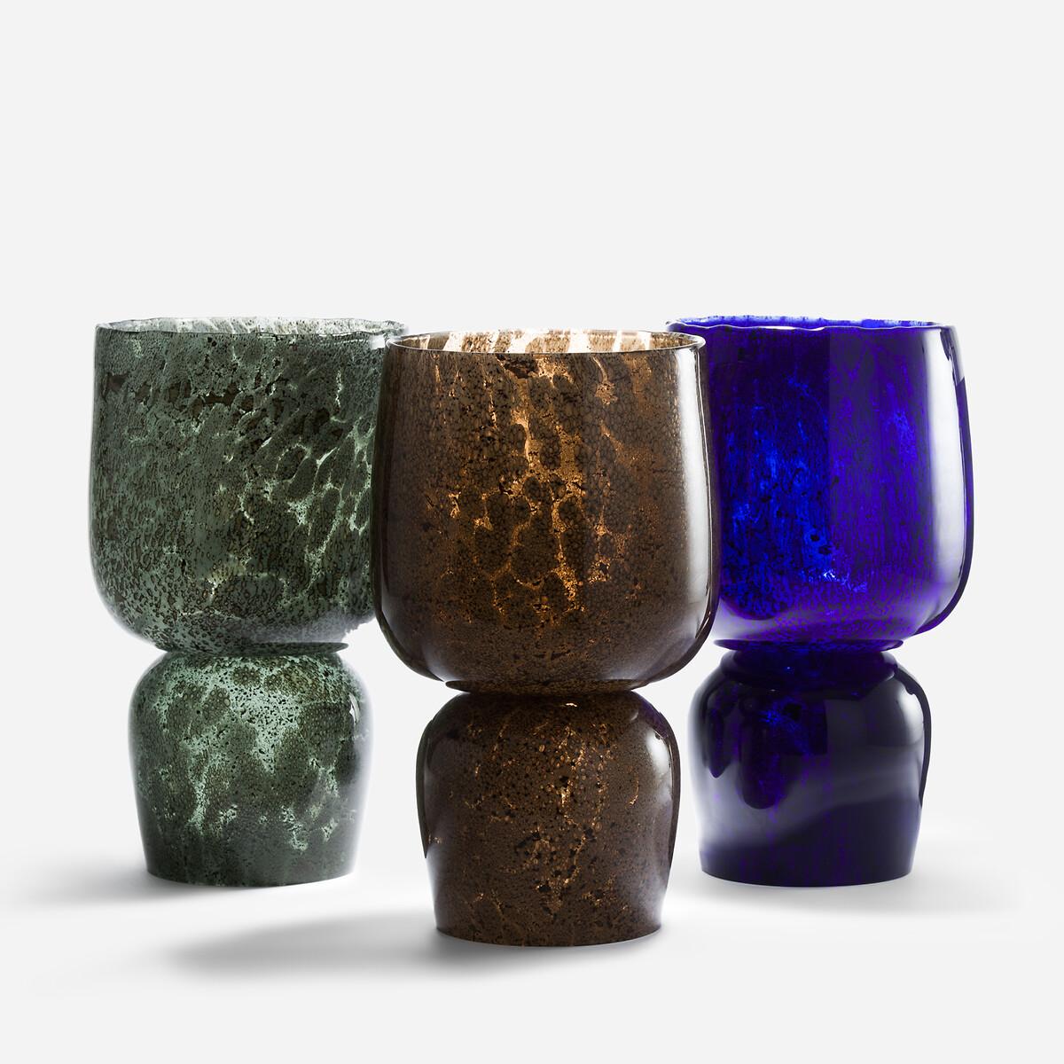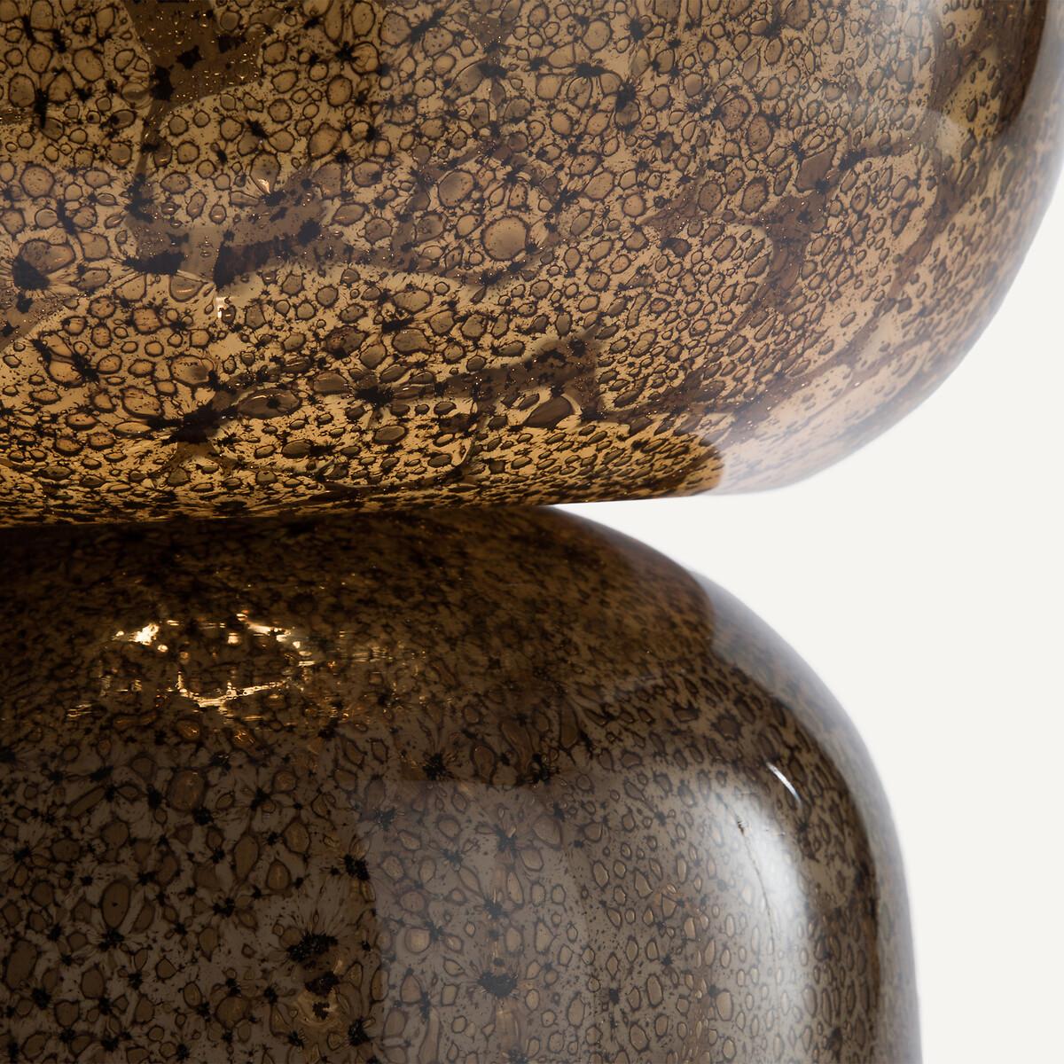 A generously sized totem vase, in transparent glass with a reactive effect. Tinted in the mass, its motif, a sowing of small random spots, evokes glass sulphides. Its irregularly contoured lip looks as if it has been cut with scissors. Composed of two hollow cups, Remus is reversible. Handcrafted, it is a contemporary unique piece, a decorative object on its own, a large vase or a flowerpot. Product Details • Made of reactive, transparent and tinted glass • Colour tinted in the mass, resistant to scratches and shocks • Water resistant • Hand-crafted, each piece is unique. Shapes, colours and dimensions may vary slightly from product to product.. Dimensions • Diameter: 24.5cm • Height: 43cm. Dimensions and weight of parcel • 1 parcel • W53 x H34 x D34cm. 8.3kg